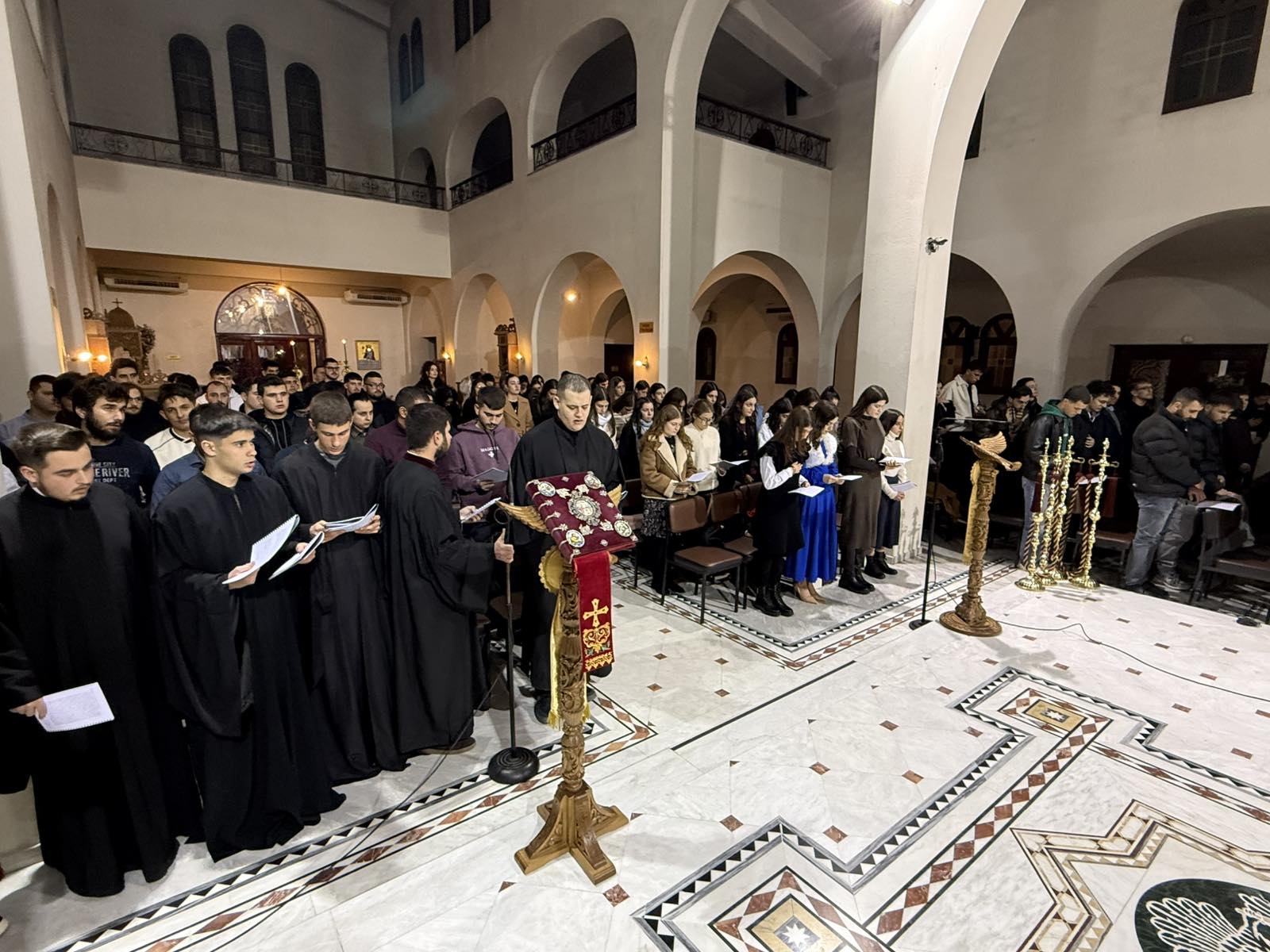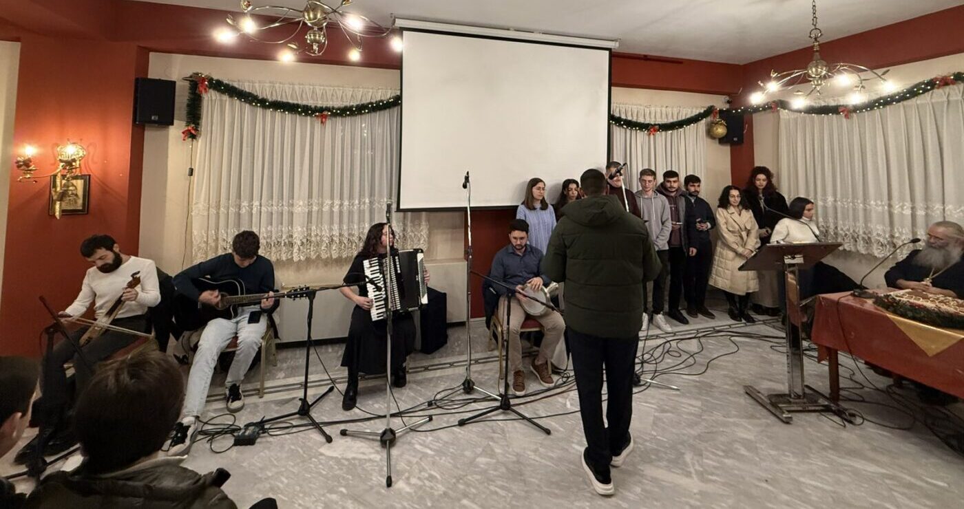 Η Σύναξη Νέων επενδύθηκε με ύμνους και κάλαντα από πολυμελή χορωδία και ορχήστρα, που συγκροτήθηκε από στελέχη του νεανικού έργου.