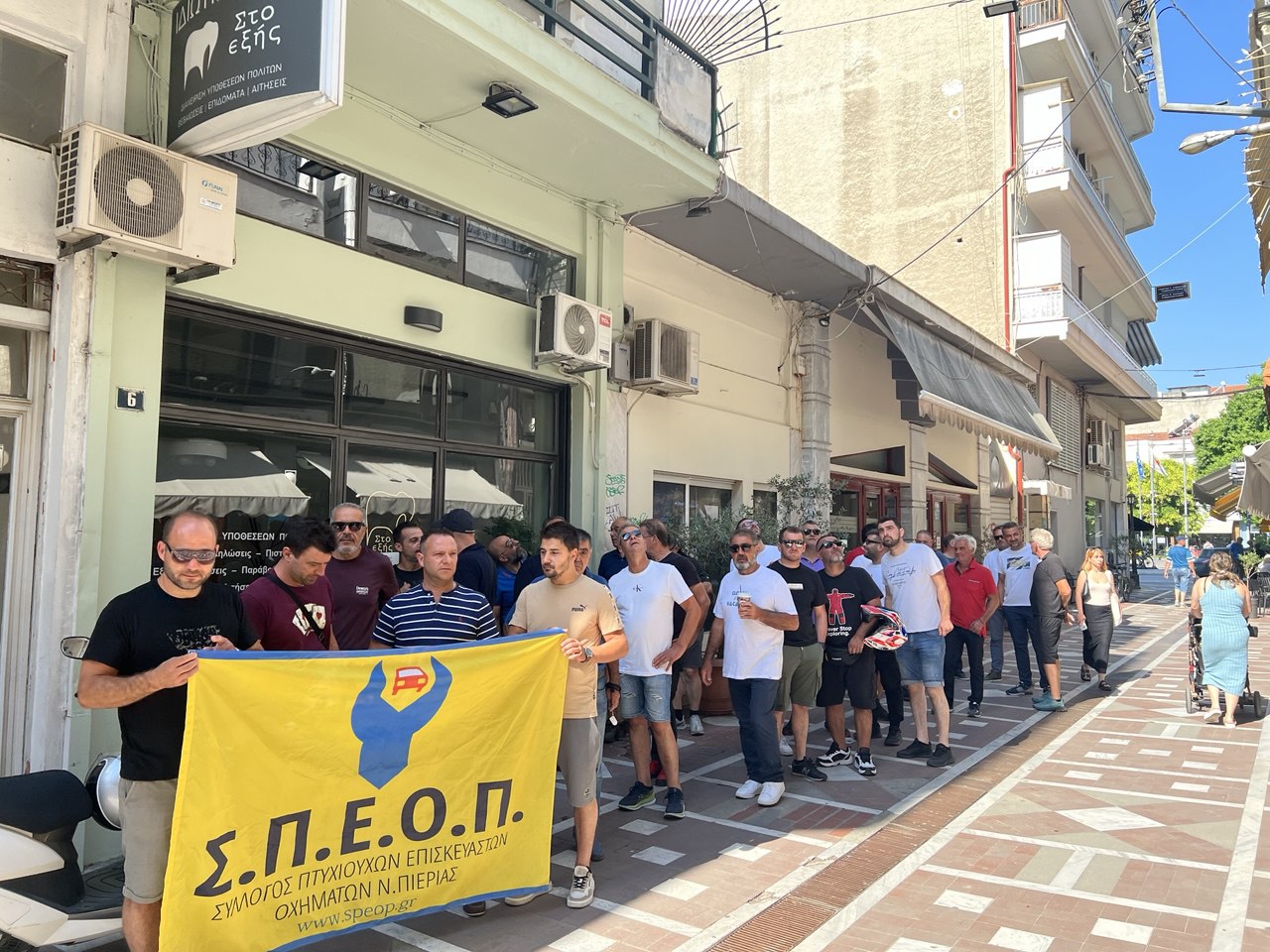 Το πρωί της Πέμπτης, μέλη του Σωματείου πραγματοποίησαν πορεία διαμαρτυρίας στην Κατερίνη, εκφράζοντας την αντίθεσή τους στις νέες ρυθμίσεις, συμμετέχοντας στις κινητοποιήσεις που έχει εξαγγείλει ο κλάδος τους πανελλαδικά.
