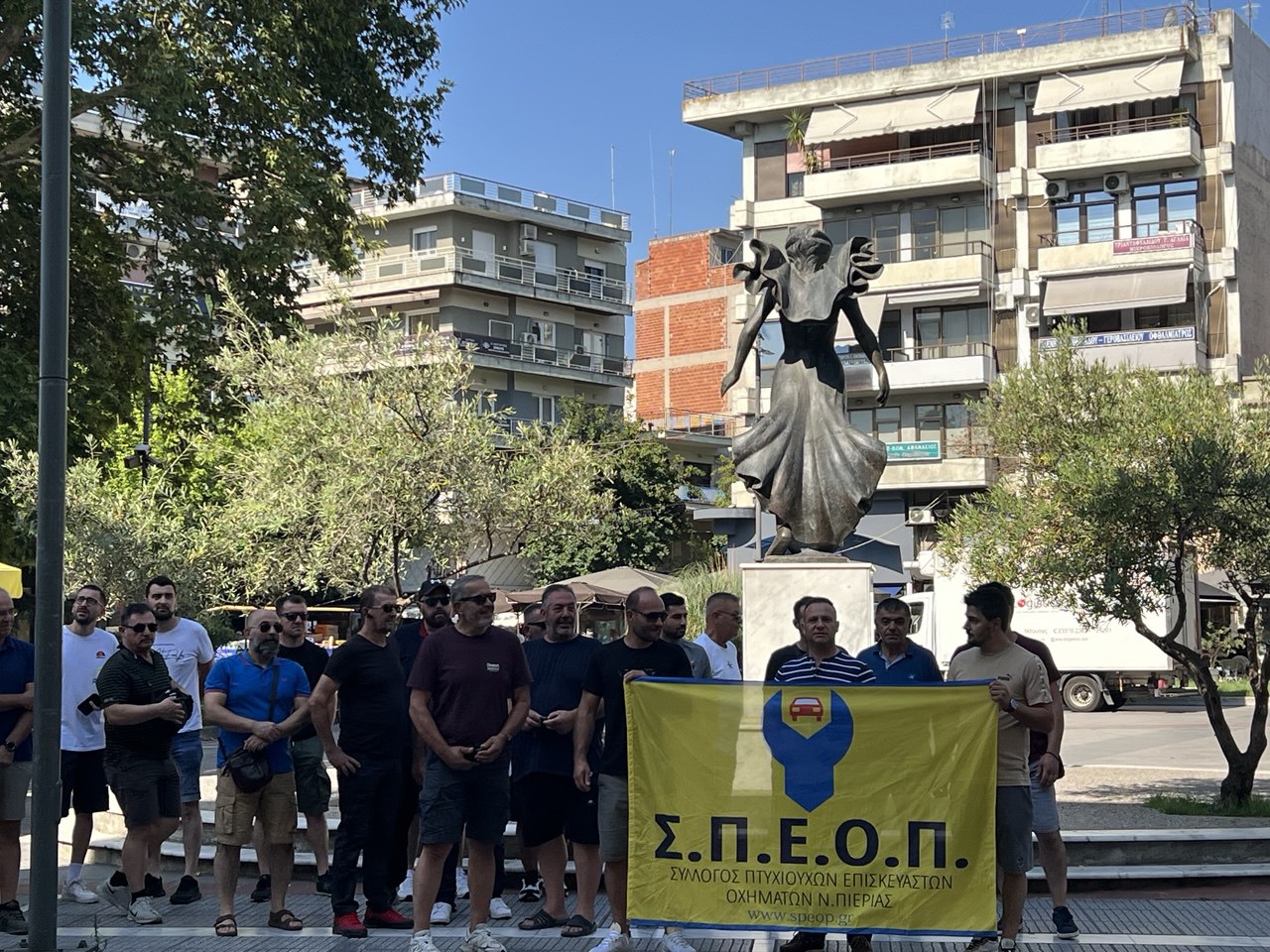 Οι Πτυχιούχοι Επισκευαστές Οχημάτων Πιερίας συνεχίζουν τις κινητοποιήσεις τους, διαμαρτυρόμενοι έντονα ενάντια στο «ψηφιακό πελατολόγιο», ένα μέτρο που, όπως υποστηρίζουν, οδηγεί σε λουκέτο τα συνεργεία οχημάτων.