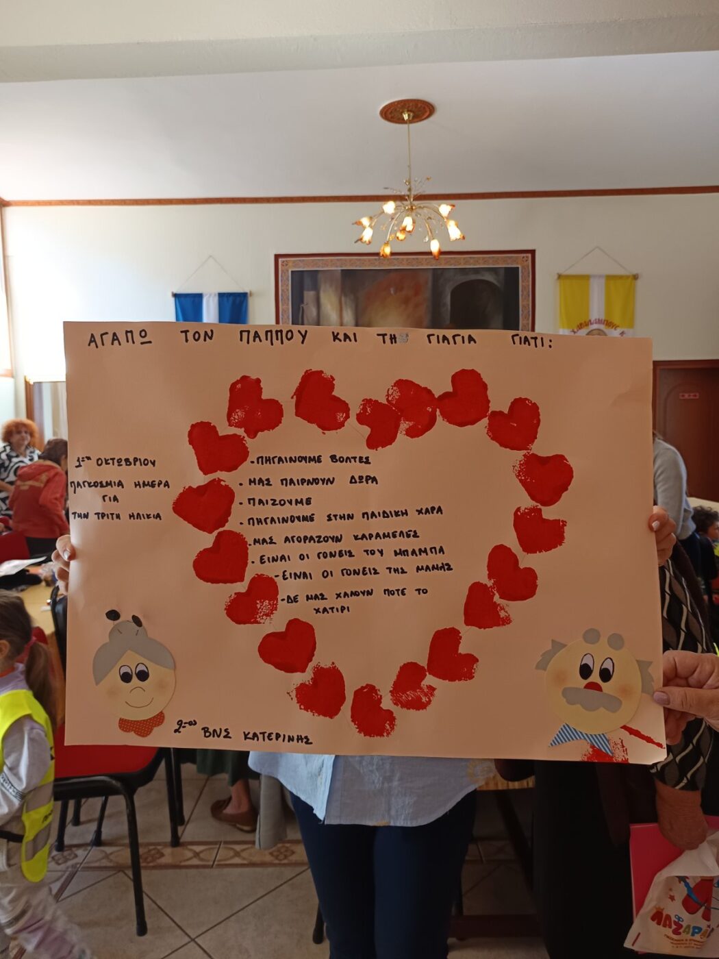 Η δράση εν όψει του (αυριανού) εορτασμού της Παγκόσμιας Ημέρας Τρίτης Ηλικίας είχε στόχο την προαγωγή των αξιών του σεβασμού, της αλληλεγγύης και της κοινωνικής συνοχής, υπενθυμίζοντας την ανάγκη να τιμάται η πολύτιμη συμβολή της Τρίτης Ηλικίας στην οικογένεια και την κοινωνία.