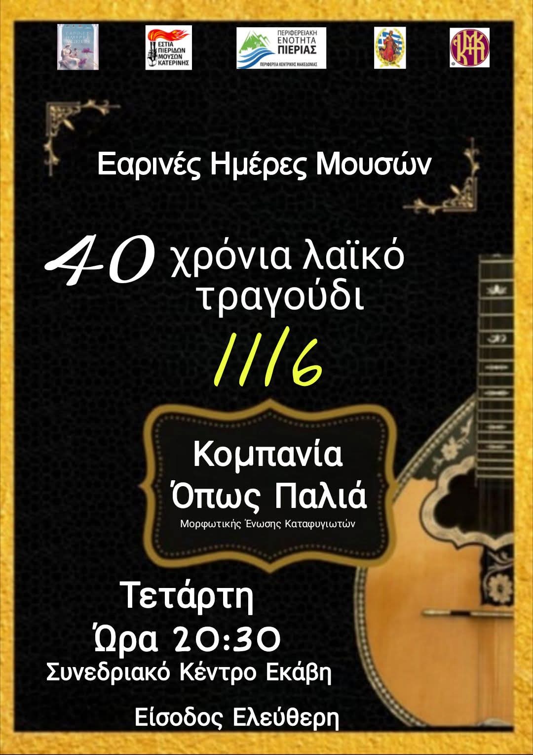 Στο πλαίσιο των “Εαρινών Ημερών Μουσών 2025”, η Εστία Πιερίδων Μουσών διοργανώνει μια όμορφη μουσική βραδιά με την “Κομπανία όπως παλιά” της Μορφωτικής Ένωσης Καταφυγιωτών.