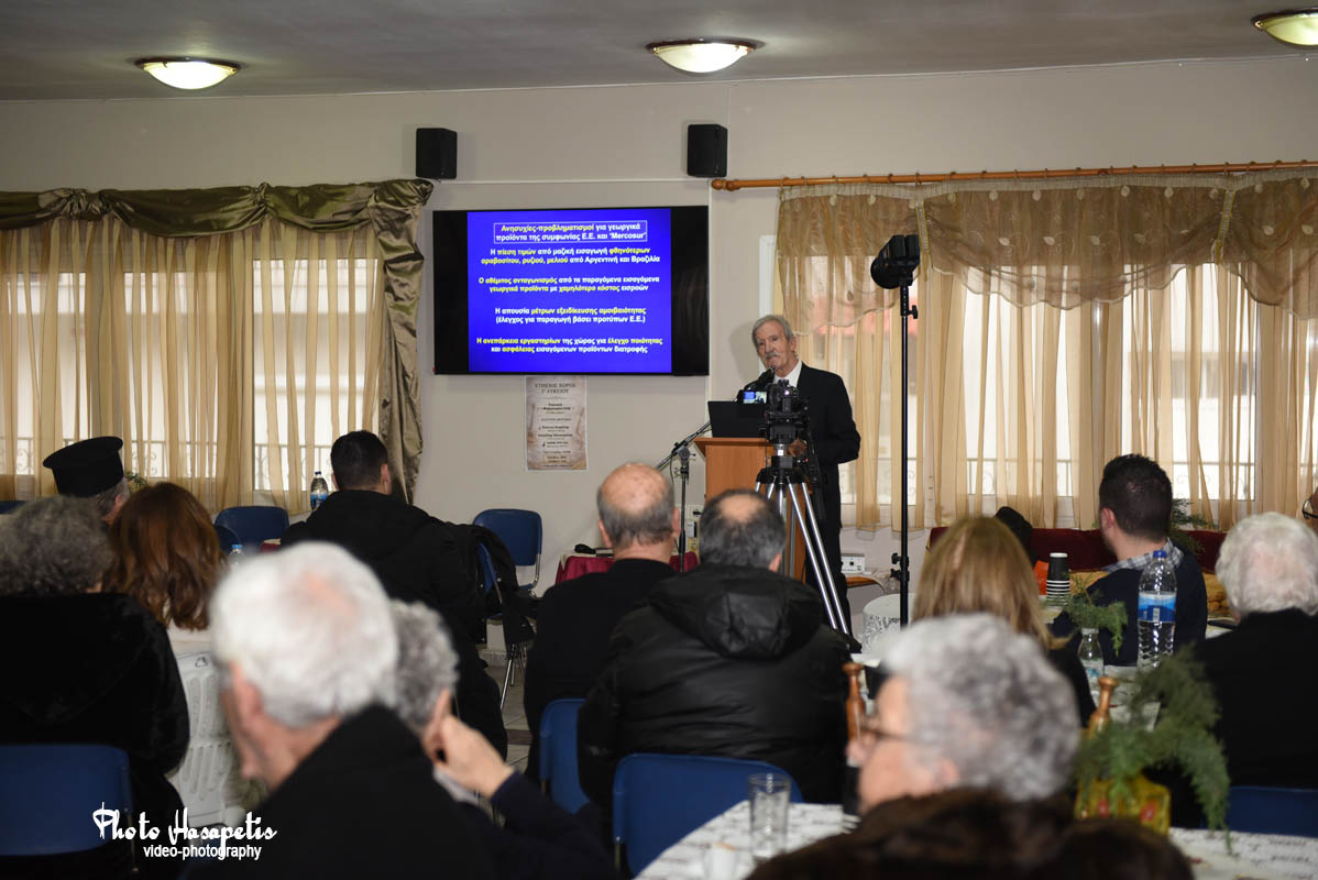 Το θέμα της ομιλίας του ήταν: «Ποιο είναι το μέλλον της Ελληνικής γεωργίας μετά τη συμφωνία της Ευρωπαϊκής Ένωσης με χώρες της Νότιας Αμερικής (‘Mercosur’);».