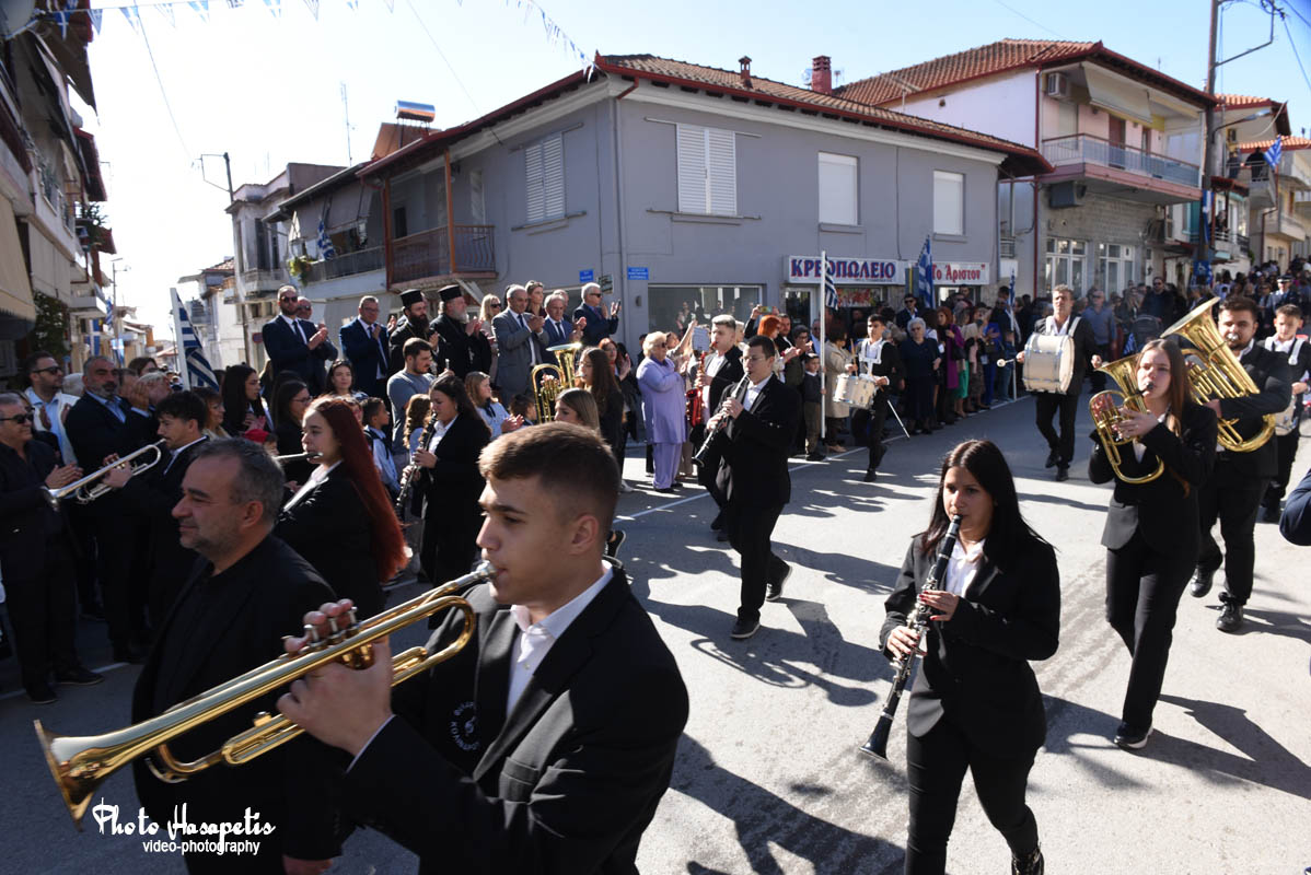 Ύστερα, η κεντρική οδός, υπό τους ήχους της φιλαρμονικής, γέμισε νεανικό βήμα και σημαίες ψηλά,