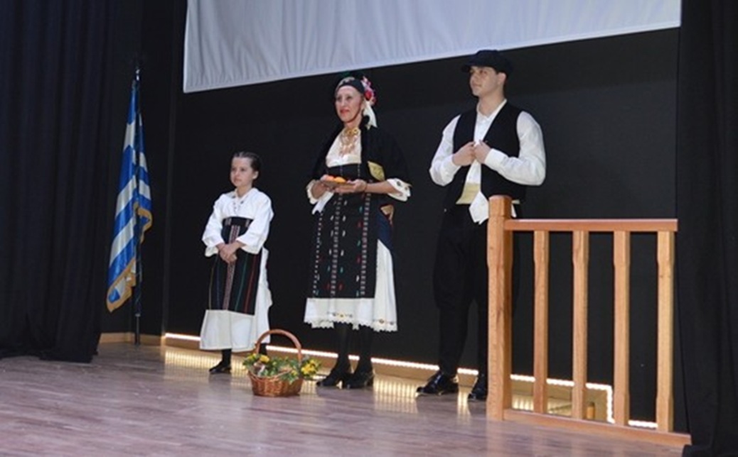 Η εκδήλωση διανθίστηκε με ιστορικά και λαογραφικά κείμενα τα οποία συνέγραψε και ανέγνωσε η υπεύθυνη δημοσίων σχέσεων του Λυκείου Μυράντα Παππά. Στην αφήγηση της η κ. Παππά αφού γνωστοποίησε τα βιωματικά έθιμα της κάθε περιοχής, διατύπωσε επιγραμματικά: «Η αποψινή μας εκδήλωση είναι μια γιορτή γεμάτη αρώματα άνοιξης, χρώματα παράδοσης και ήχους γιορτινούς. Η παράδοσή μας δεν είναι παρελθόν. Είναι κομμάτι της ταυτότητάς μας, είναι η μνήμη του προγονικού μας.