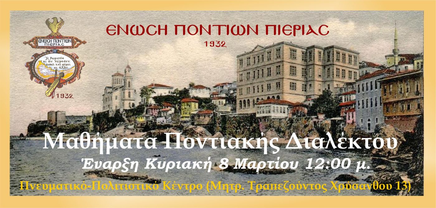 Τα μαθήματα θα πραγματοποιηθούν στο Πνευματικό-Πολιτιστικό κέντρο της Ένωσης Ποντίων Πιερίας (Μητ. Τραπεζούντος Χρύσανθου 13).
