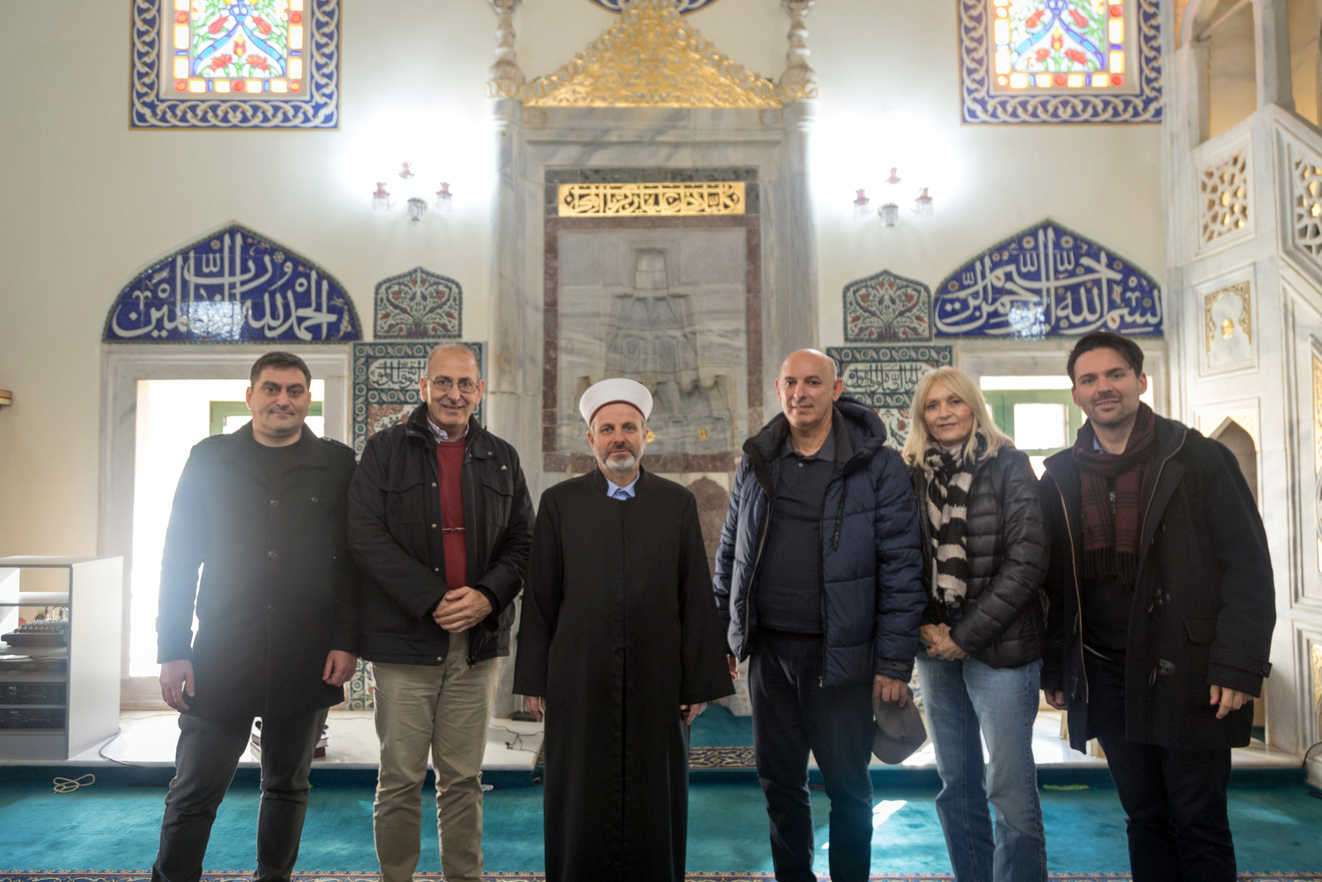Στην Κομοτηνή, οι μαθητές συνάντησαν τον Σεβασμιώτατο Μητροπολίτη Μαρωνείας κ. Παντελεήμονα και τον Σοφολογιότατο Τοποτηρητή Μουφτή κ. Σερίφ Δαμάδογλου Γιασιάρ. Ο Σοφολογιότατος υποδέχτηκε τους μαθητές και τις μαθήτριες στο ιστορικό Γενί Τζαμί, όπου παρουσίασε τον χώρο προσευχής καθώς και τα βασικά χαρακτηριστικά της καθημερινής ζωής των πιστών μουσουλμάνων. Οι μαθητές και οι συνοδοί εκπαιδευτικοί παρατήρησαν τα αρχιτεκτονικά και διακοσμητικά στοιχεία του τεμένους, θέτοντας ερωτήματα για την αραβική καλλιγραφία, την απουσία εικονιστικών παραστάσεων, καθώς και για βασικές πτυχές της ισλαμικής θεολογίας.