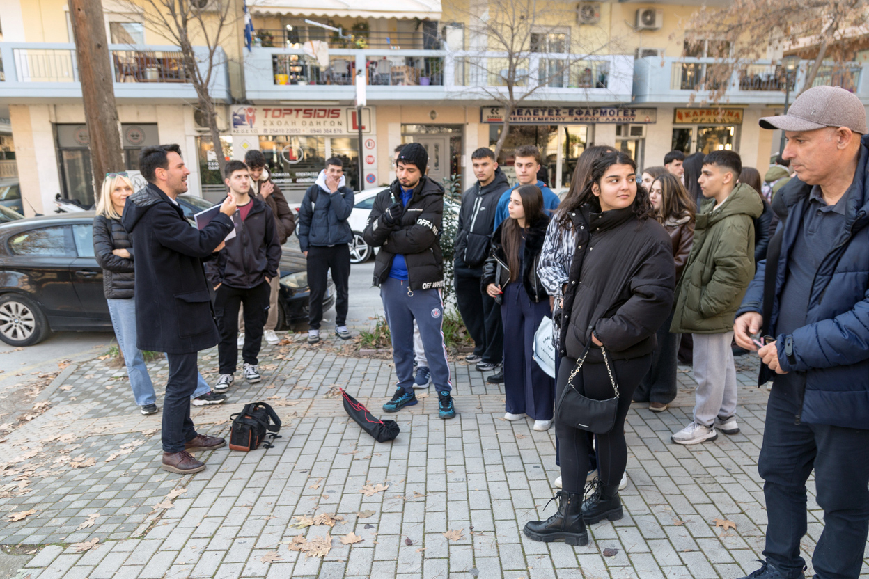 πόλης που αναφέρονται στις πολιτισμικές ετερότητες του τόπου. Η περιήγηση ξεκίνησε από το μνημείο των τεσσάρων νεκρών Χριστιανών και Μουσουλμάνων καπνεργατών της απεργίας της 11ης Ιουνίου 1928. Στη συνέχεια, οι μαθητές περπάτησαν στην περιοχή όπου βρίσκονταν η εβραϊκή συναγωγή και το κέντρο της εβραϊκής κοινότητας. Στο σημείο αυτό, ο κ. Κοσμίδης τους ενημέρωσε για την εξόντωση της κοινότητας στην Τρεμπλίνκα, καθώς και για τις σχετικές δράσεις που το πρόγραμμα έχει αναπτύξει με στόχο τη διατήρηση της ιστορικής μνήμης.