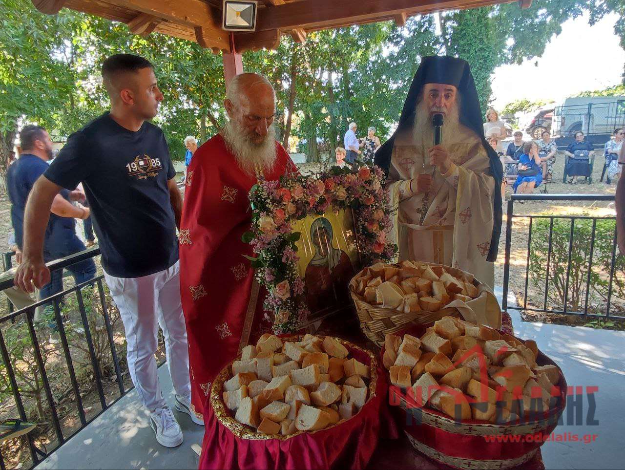 Σήμερα, στην Πανηγυρική Θεία Λειτουργία, η συμμετοχή του κόσμου ήταν εντυπωσιακή, γεμίζοντας το ξωκλήσι και τον περιβάλλοντα χώρο.