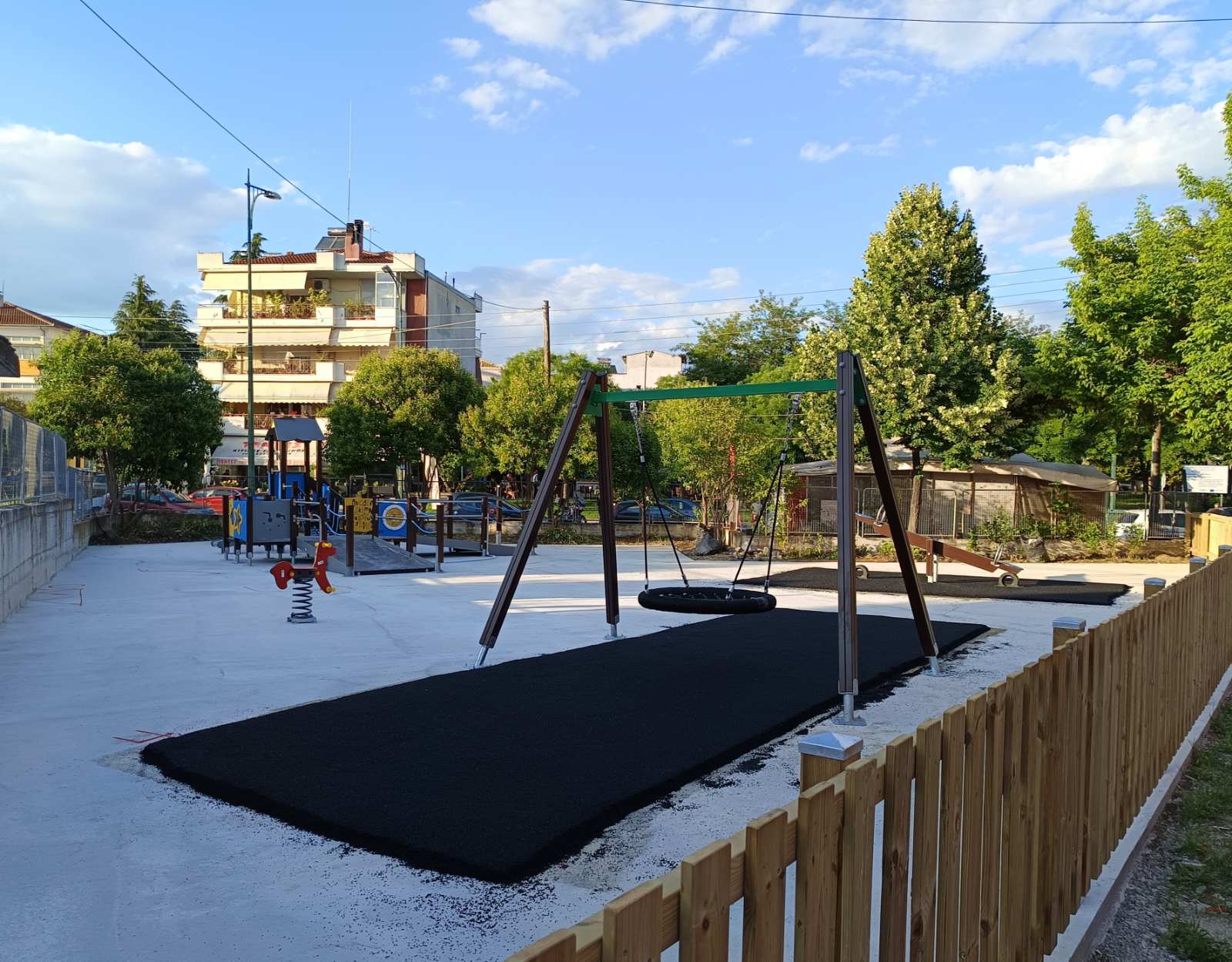 Συγκεκριμένα, η δωρεά του Σωματείου «ΕΙΡΗΝΗ» περιλαμβάνει την τοποθέτηση δαπέδου ασφαλείας και την προμήθεια σύγχρονου εξοπλισμού με προσβάσιμα παιχνίδια, κατάλληλα σχεδιασμένα ώστε να εξυπηρετούν τις ανάγκες όλων των παιδιών καθώς και τη διαμόρφωση του περιβάλλοντος χώρου. Προηγήθηκε από τις υπηρεσίες του Δήμου, η κατασκευή της απαραίτητης υπόβασης από σκυρόδεμα και η συνολική διαμόρφωση του περιβάλλοντος χώρου.