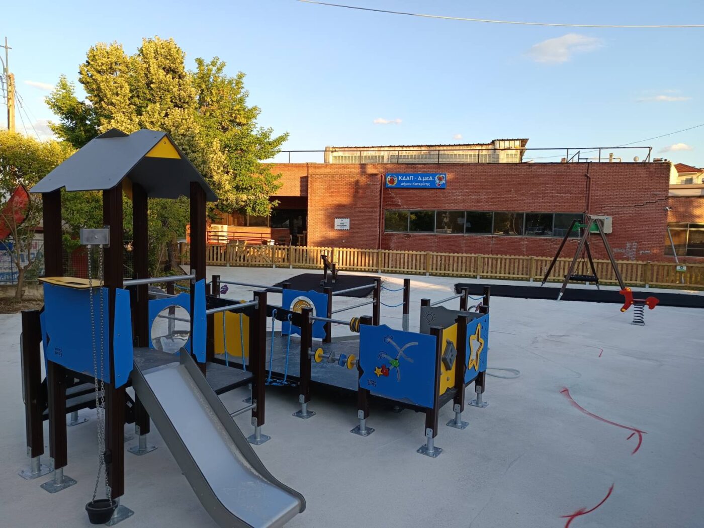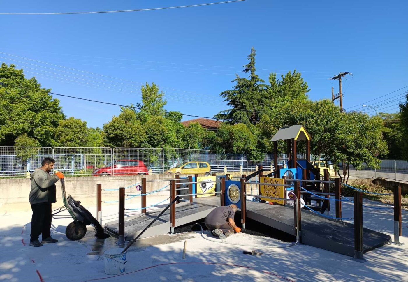 Σε πλήρη εξέλιξη οι εργασίες για την πρώτη συμπεριληπτική παιδική χαρά στον Δήμο Κατερίνης, επιφάνειας 300 τ.μ., στον προαύλιο χώρο του ΚΔΑΠ ΑμεΑ. «Στόχος μας ένας χώρος φιλικός, ασφαλής και προσβάσιμος για όλα τα παιδιά» τονίζει ο Δήμαρχος Κατερίνης, Ιωάννης Ντούμος.