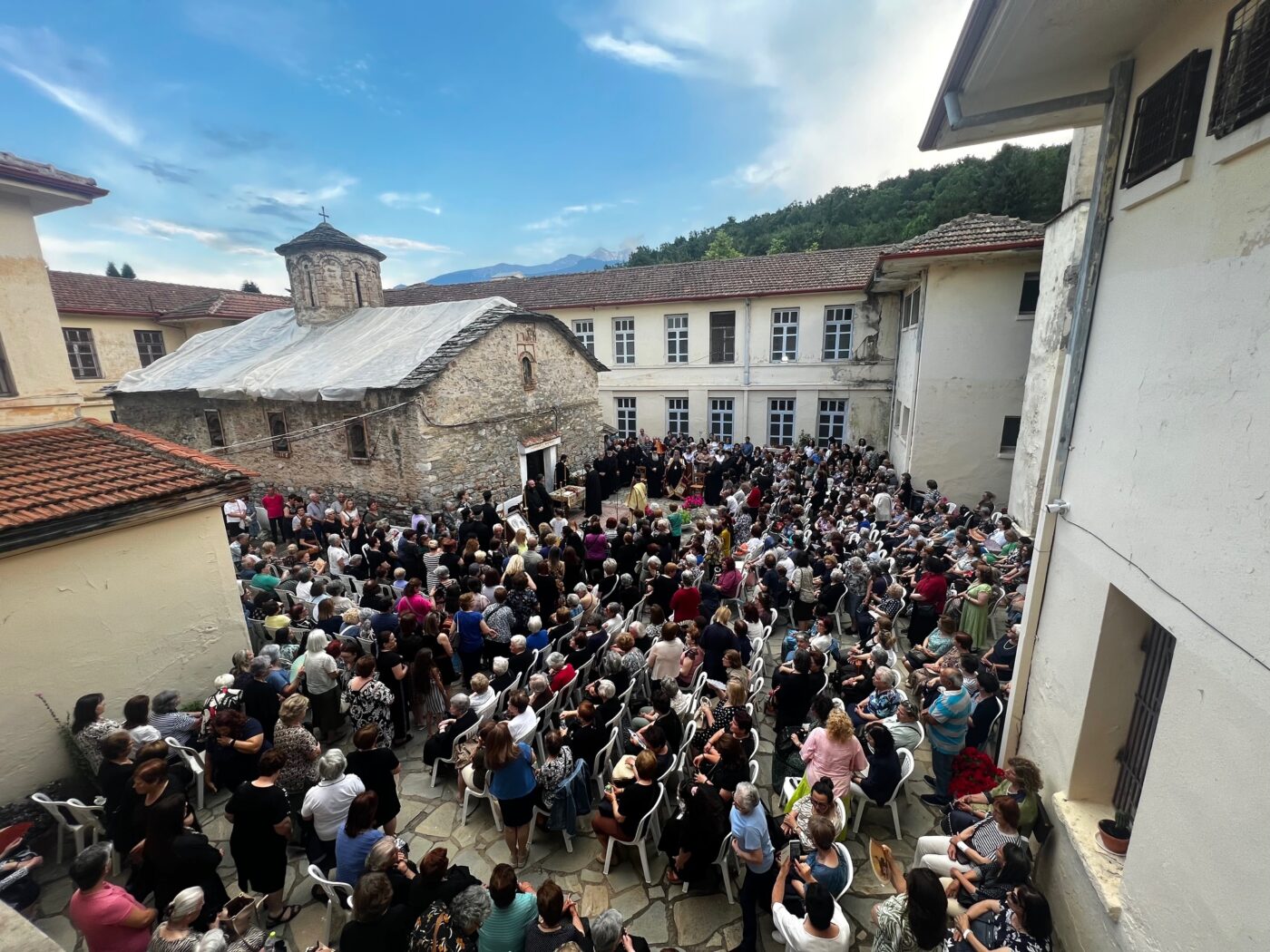 Στην τελετή παρέστη και η Αντιπεριφερειάρχης Πιερίας κα Σοφία Μαυρίδου, η οποία κατά τις προηγούμενες ημέρες φρόντισε για την προετοιμασία και των ευπρεπισμό των υπαίθριων χώρων της Ιεράς Μονής.