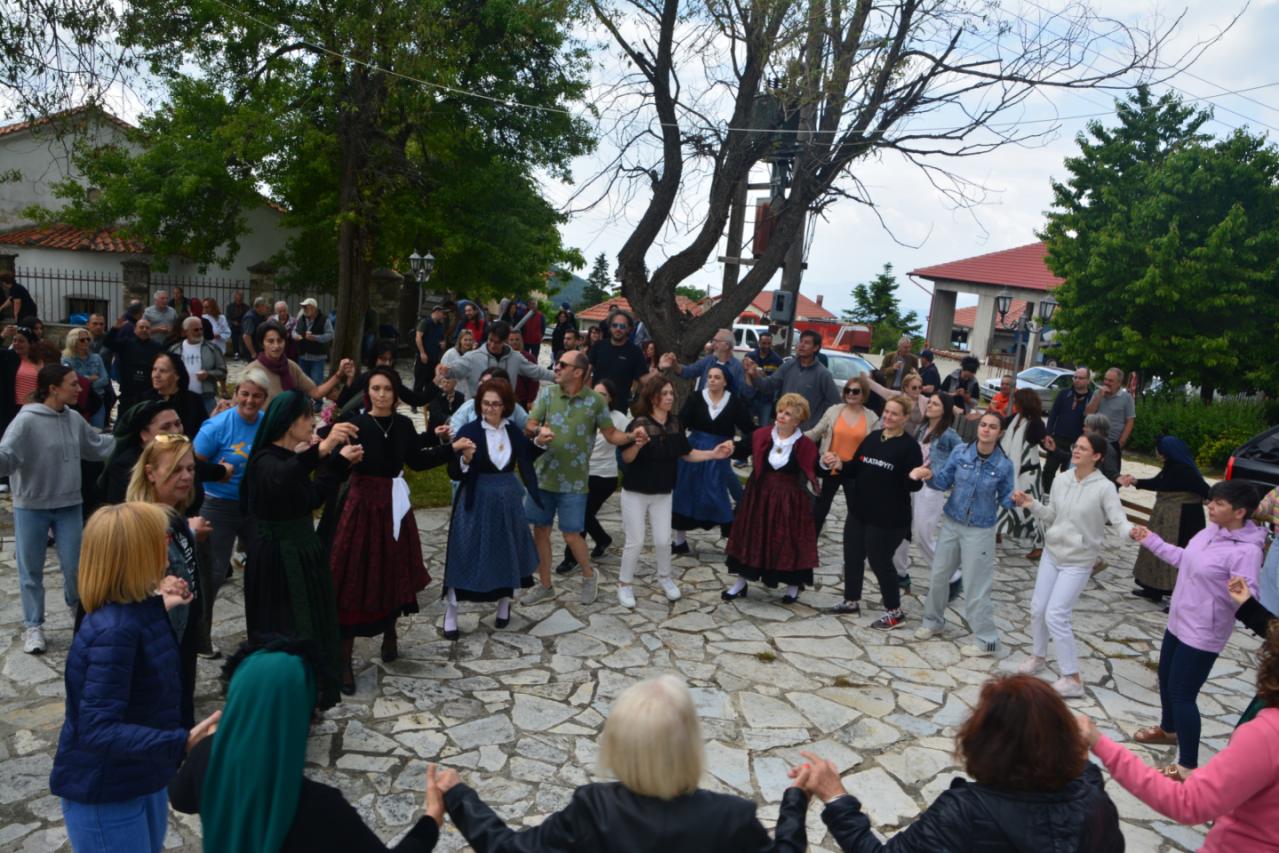 Μικροί και μεγάλοι πλημμυρίσαμε την πλατεία του χωριού κι απολαύσαμε τις κυρίες του χορευτικού της ΜΕΚ, να ζωντανεύουν το έθιμο γύρω από την Μαρούδα και να χορεύουν τα παραδοσιακά τραγούδια, που ακούγονταν αποκλειστικά εκείνη την ημέρα, από την χορωδία της ΜΕΚ.