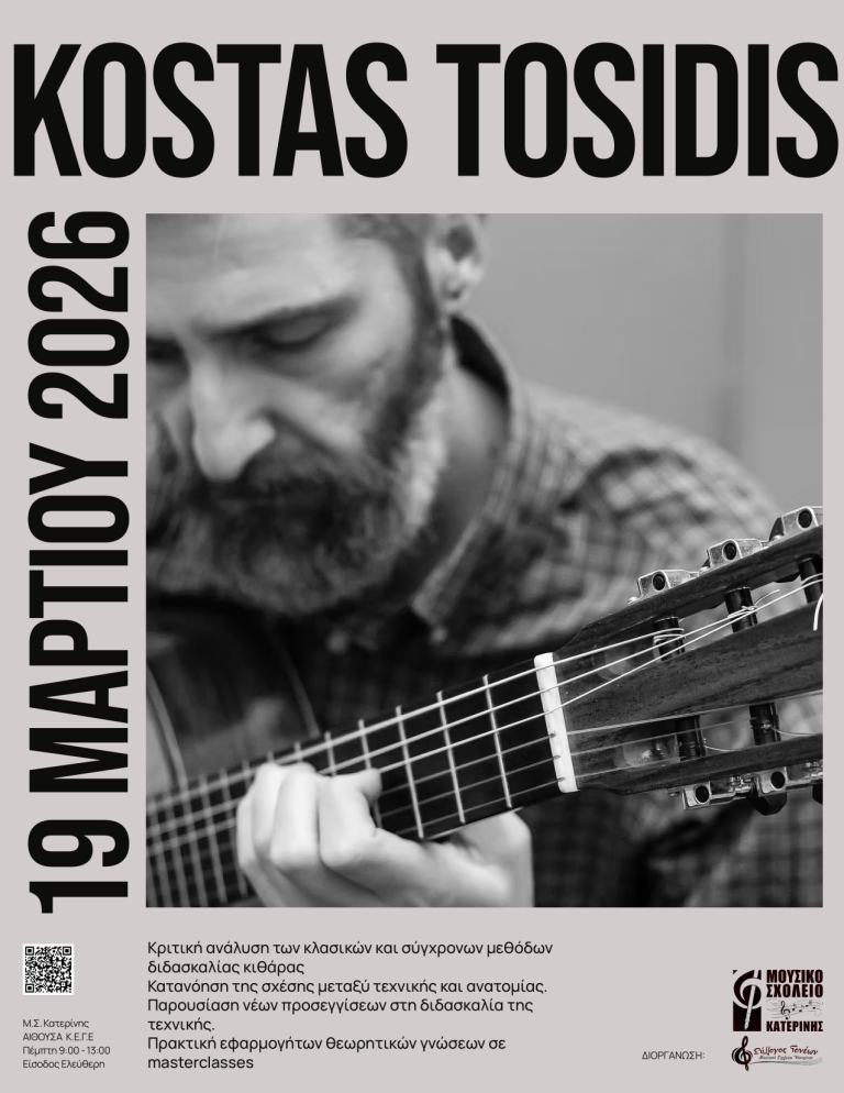 Το Τµήµα Κιθάρας του Μουσικού Σχολείου Κατερίνης διοργανώνει σεµινάριο κιθάρας µε εισηγητή τον διεθνώς καταξιωµένο κλασικό κιθαρίστα και καθηγητή του Μουσικού Πανεπιστηµίου Mozarteum του Σάλτσµπουργκ, Κώστα Τοσίδη.
