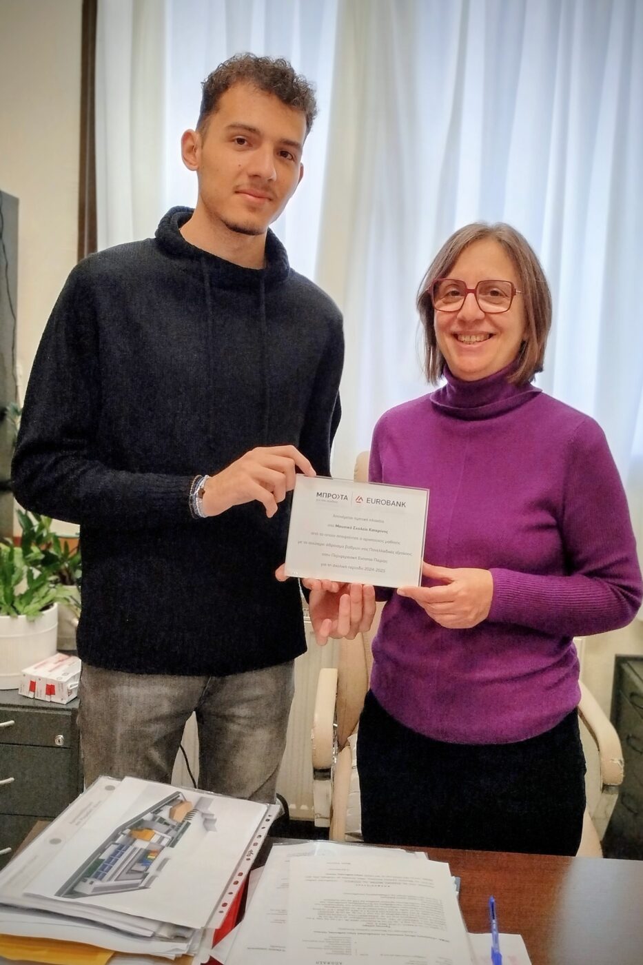 Βράβευση του μαθητή Διονύσιου Τόκα και του Μουσικού Σχολείου Κατερίνης από τη Eurobank για την κορυφαία επίδοση στις Πανελλαδικές Εξετάσεις 2025