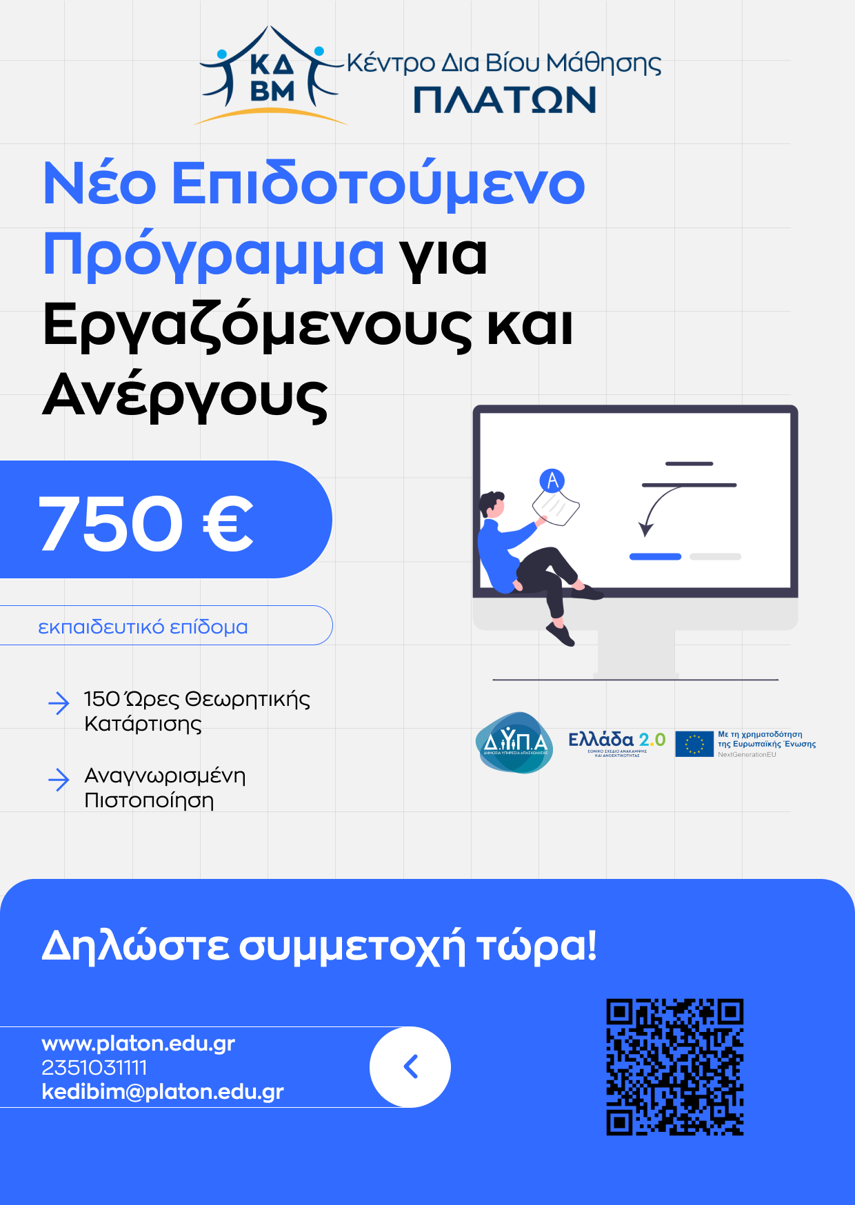 Νέο Επιδοτούμενο Πρόγραμμα 750€ για εργαζόμενους και ανέργους