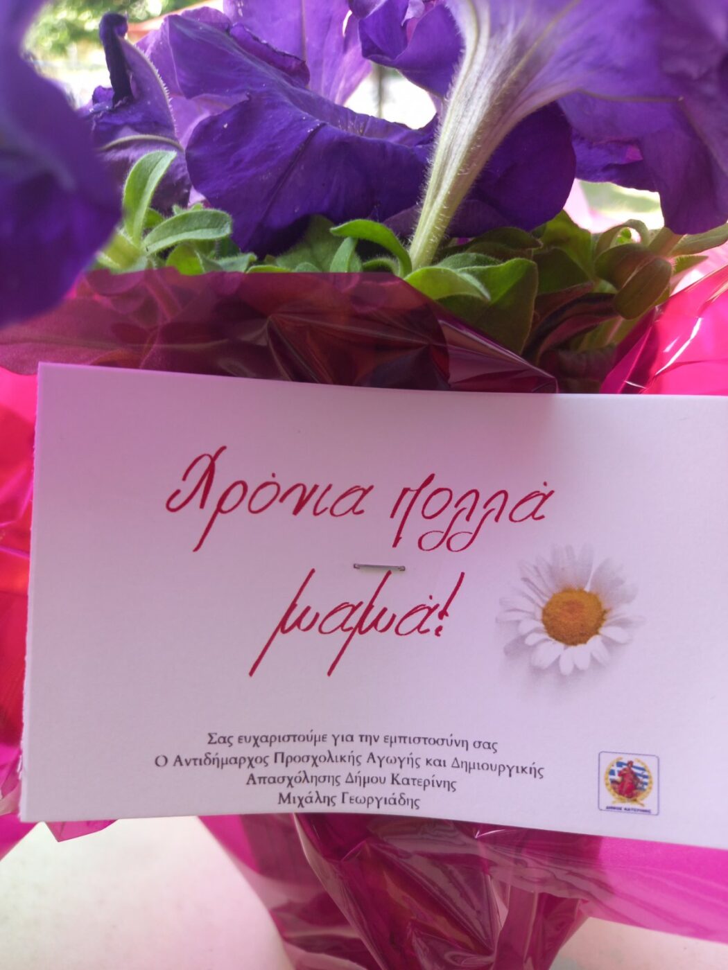 Το διαχρονικό σύμβολο αγάπης, αφοσίωσης και στοργής: τη μητέρα, τίμησε ο Δήμος Κατερίνης, μέσω της Αντιδημαρχίας Προσχολικής Αγωγής & Δημιουργικής Απασχόλησης. Συγκεκριμένα, με αφορμή την Ημέρα της Μητέρας και αναγνωρίζοντας τον θεμελιώδη ρόλο που διαδραματίζει στην οικογένεια και την κοινωνία, υλοποιήθηκαν πρωτότυπες δράσεις με επίκεντρο τη μητέρα και το παιδί.
