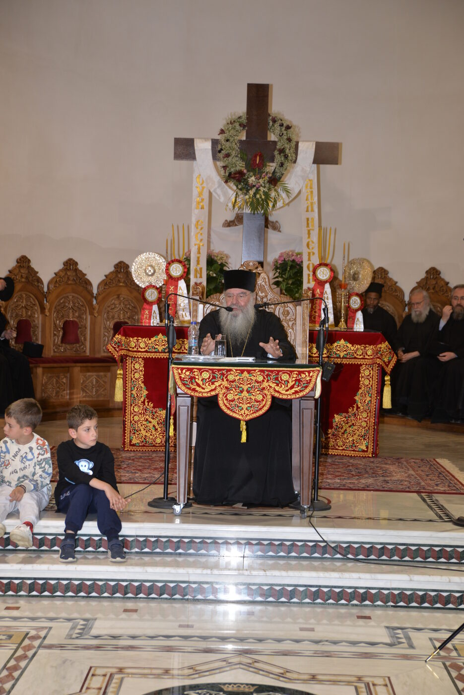 Ο Σεβασμιώτατος κ. Γεώργιος προλόγισε την εκδήλωση, καλωσορίζοντας τον φιλοξενούμενο Αρχιερέα και ευχαριστώντας τον για την παρουσία του. Στη συνέχεια, ο Μητροπολίτης Λεμεσού ανέπτυξε με γλαφυρότητα το θέμα «Γνώρισα τον Άγιο Παΐσιο», αναφερόμενος σε προσωπικές του εμπειρίες και αναλύοντας σημαντικά σημεία της διδασκαλίας του Αγίου.