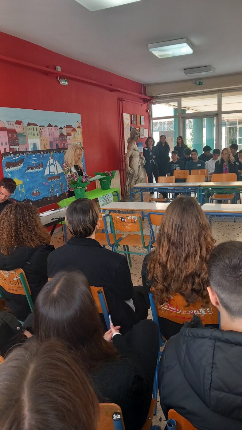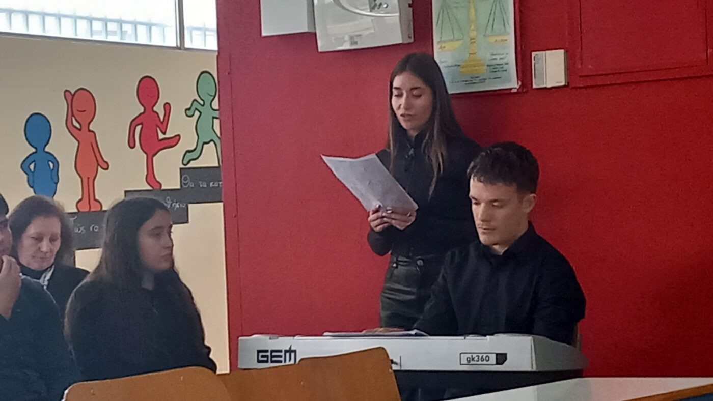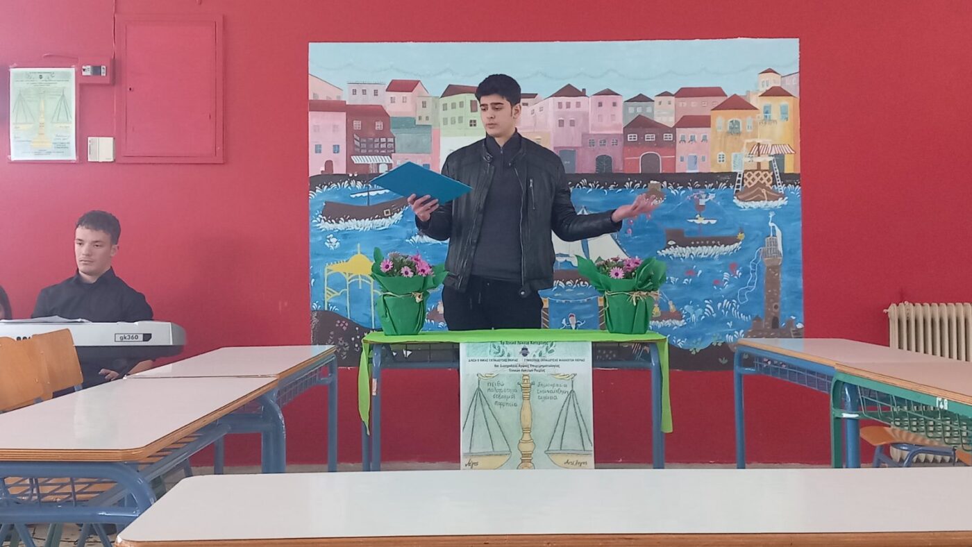 Κατά τη διάρκεια αναμονής των αποτελεσμάτων και πριν τον τελικό αγώνα, οι μαθητές της Β΄ τάξης του σχολείου μας Κίμων Κιρκασιάδης και Δημήτρης Αναγνωστόπουλος ερμήνευσαν τους μονολόγους των Βρούτου και Μάρκου Αντώνιου, αντίστοιχα, από το θεατρικό έργο του Σαίξπηρ “Ιούλιος Καίσαρας”, το οποίο συνιστά μια από τις πιο γνωστές αντιλογίες στην παγκόσμια λογοτεχνία. Στη συνέχεια, η Ειρήνη Πασσαλίδου, η Φωτεινή Ταβλετίδου, η Καλλιρρόη Καζαζιάδου, η Μαίρη Χατζηπαντελή, ο Νίκος Σαρηγιαννίδης, ο Χρήστος Σταυρίδης και ο Θάνος Καρακώνης απήγγειλαν ποιήματα Ελλήνων ποιητών για την ελληνική γλώσσα. Τη μικρή εκδήλωση έντυσαν μουσικά η Άννα Μαρία Κακουλίδου που τραγούδησε σύγχρονους Έλληνες συνθέτες και ο Λεωνίδας Δουρουκλάκης που τη συνόδευσε στο πιάνο.