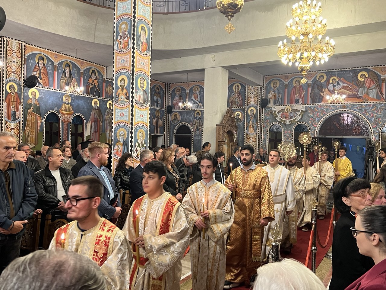 Την Κυριακή 2 Νοεμβρίου, το απόγευμα, τελέστηκε πανηγυρικός πολυαρχιερατικός Εσπερινός, χοροστατούντος του Θεοφιλεστάτου Επισκόπου Αλμωπίας κ. Στεφάνου. Συγχοροστάτησαν οι Σεβασμιώτατοι Μητροπολίτες Βεροίας, Ναούσης και Καμπανίας κ. Παντελεήμων, Σερβίων και Κοζάνης κ. Παύλος, Πολυανής και Κιλκισίου κ. Βαρθολομαίος καθώς και ο Θεοφιλέστατοι Επίσκοποι Αμορίου κ. Νικηφόρος, Αμφιπόλεως κ. Χριστοφόρος (ο οποίος κήρυξε και τον θ. λόγο), και Δομενίκου κ. Αθηναγόρας.