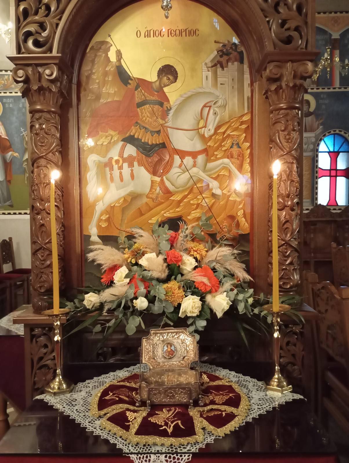 Η εορτή της Ανακομιδής του ιερού λειψάνου του Αγίου Μεγαλομάρτυρος Γεωργίου του Τροπαιοφόρου τελέστηκε στον πανηγυρίζοντα Ιερό Ναό Αγίου Γεωργίου Νέας Περιστάσεως Κατερίνης.