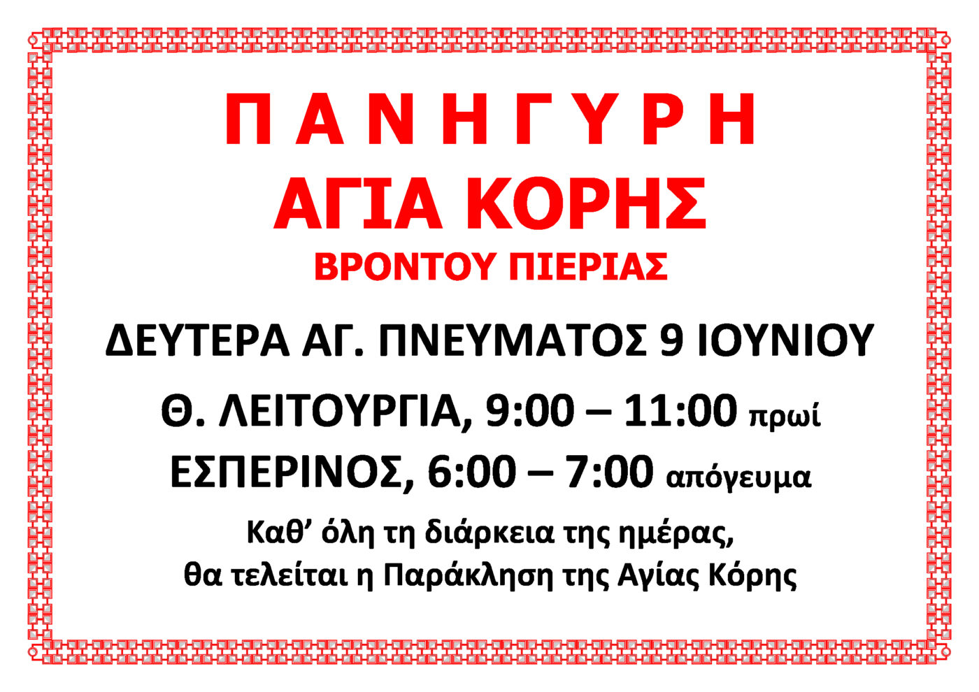 ΔΕΥΤΕΡΑ ΑΓ. ΠΝΕΥΜΑΤΟΣ 9 ΙΟΥΝΙΟΥ