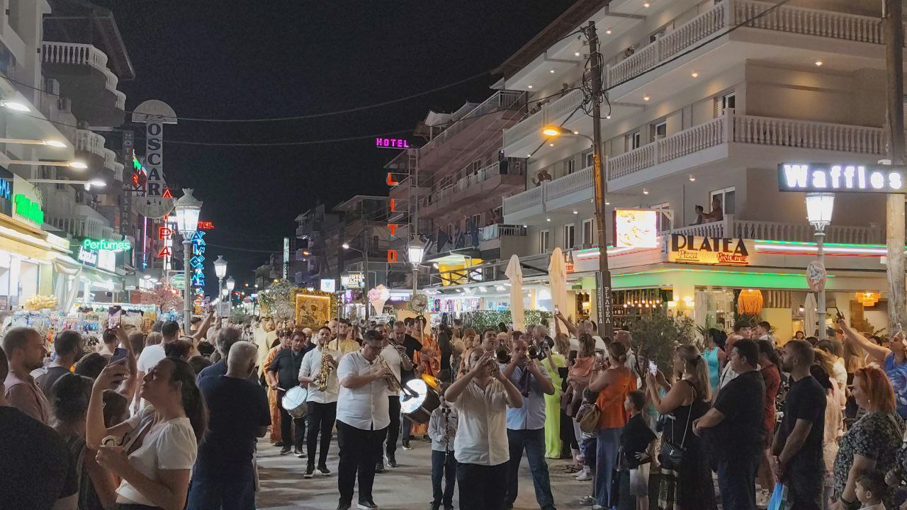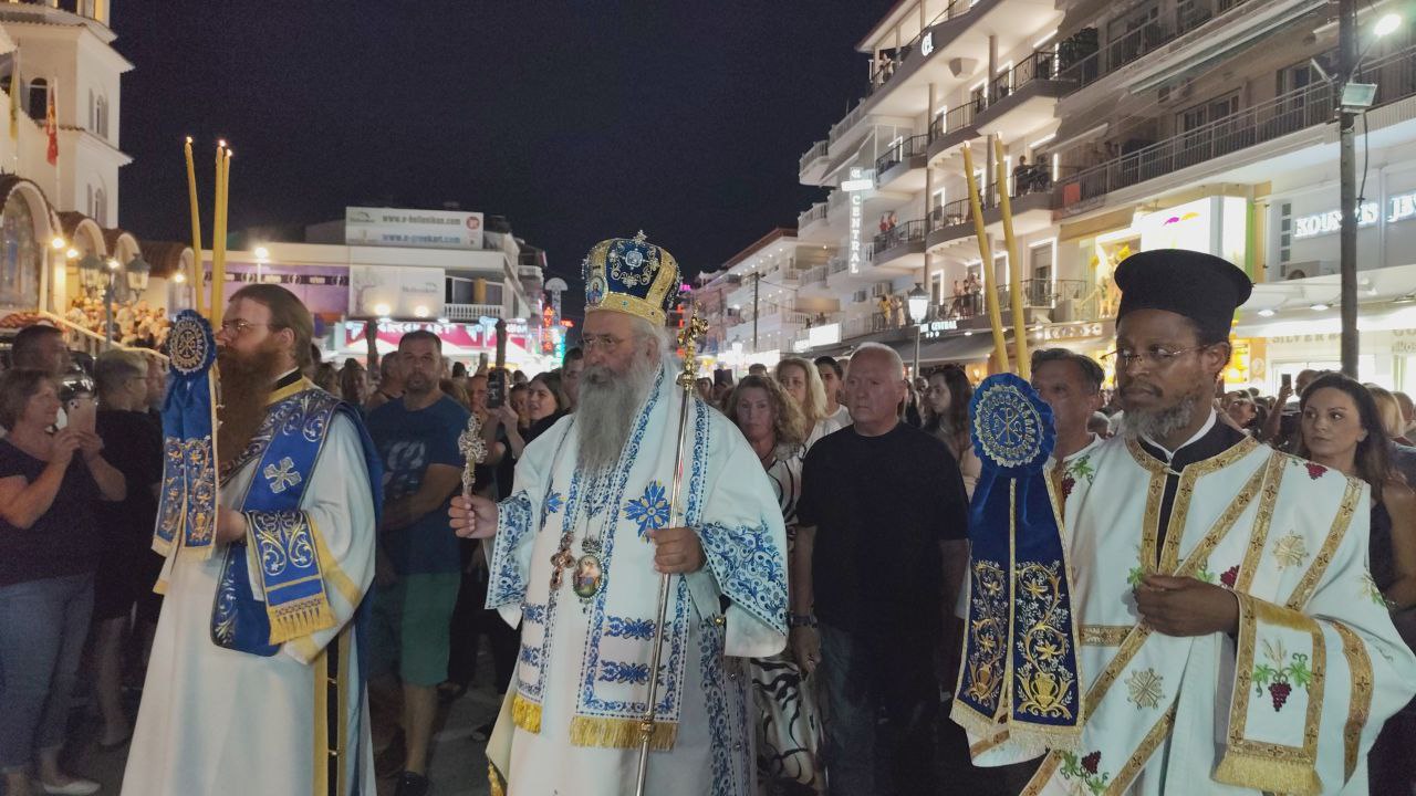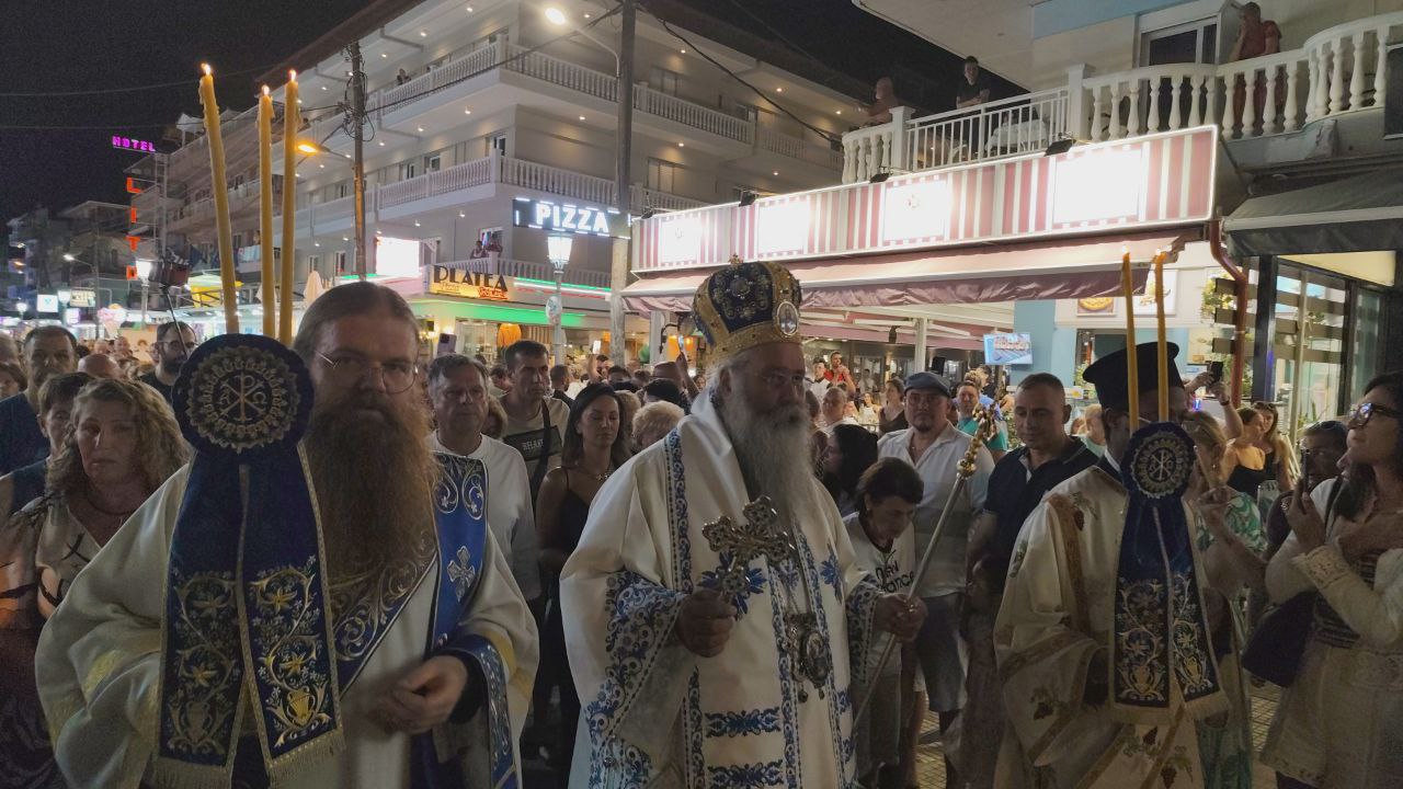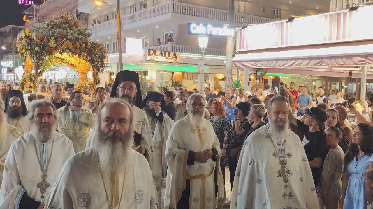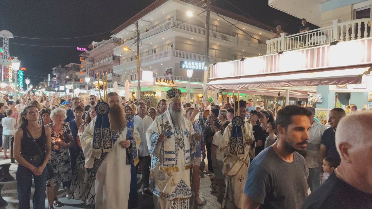 Με τη συμμετοχή πλήθους πιστών, Ελλήνων και ξένων, πραγματοποιήθηκε η λιτανεία του Επιταφίου της Παναγίας στην Παραλία Κατερίνης, με επίκεντρο τον Ιερό Ναό της Αγίας Φωτεινής.