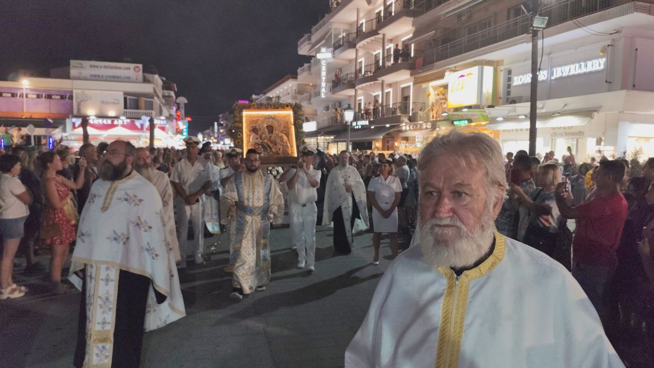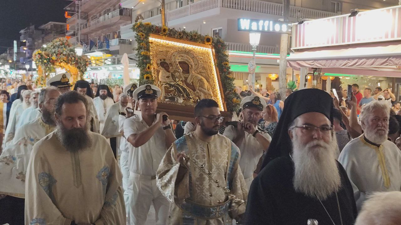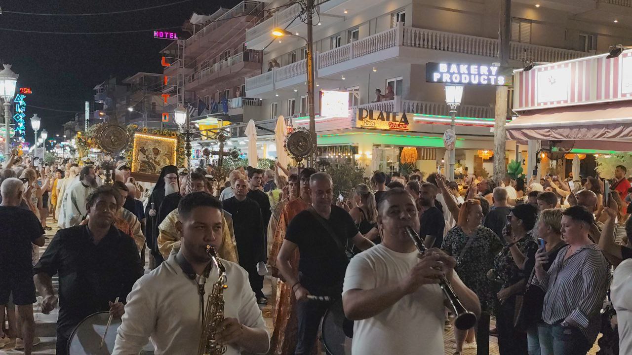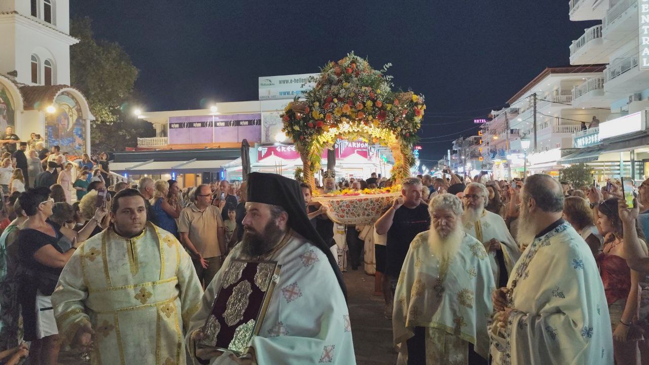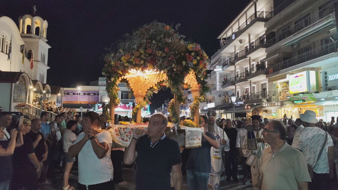 Με τη συμμετοχή πλήθους πιστών, Ελλήνων και ξένων, πραγματοποιήθηκε η λιτανεία του Επιταφίου της Παναγίας στην Παραλία Κατερίνης, με επίκεντρο τον Ιερό Ναό της Αγίας Φωτεινής.