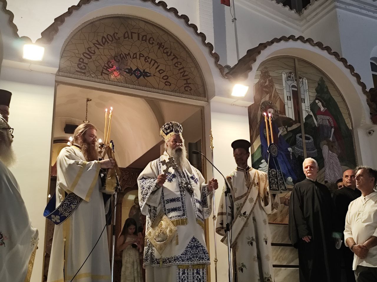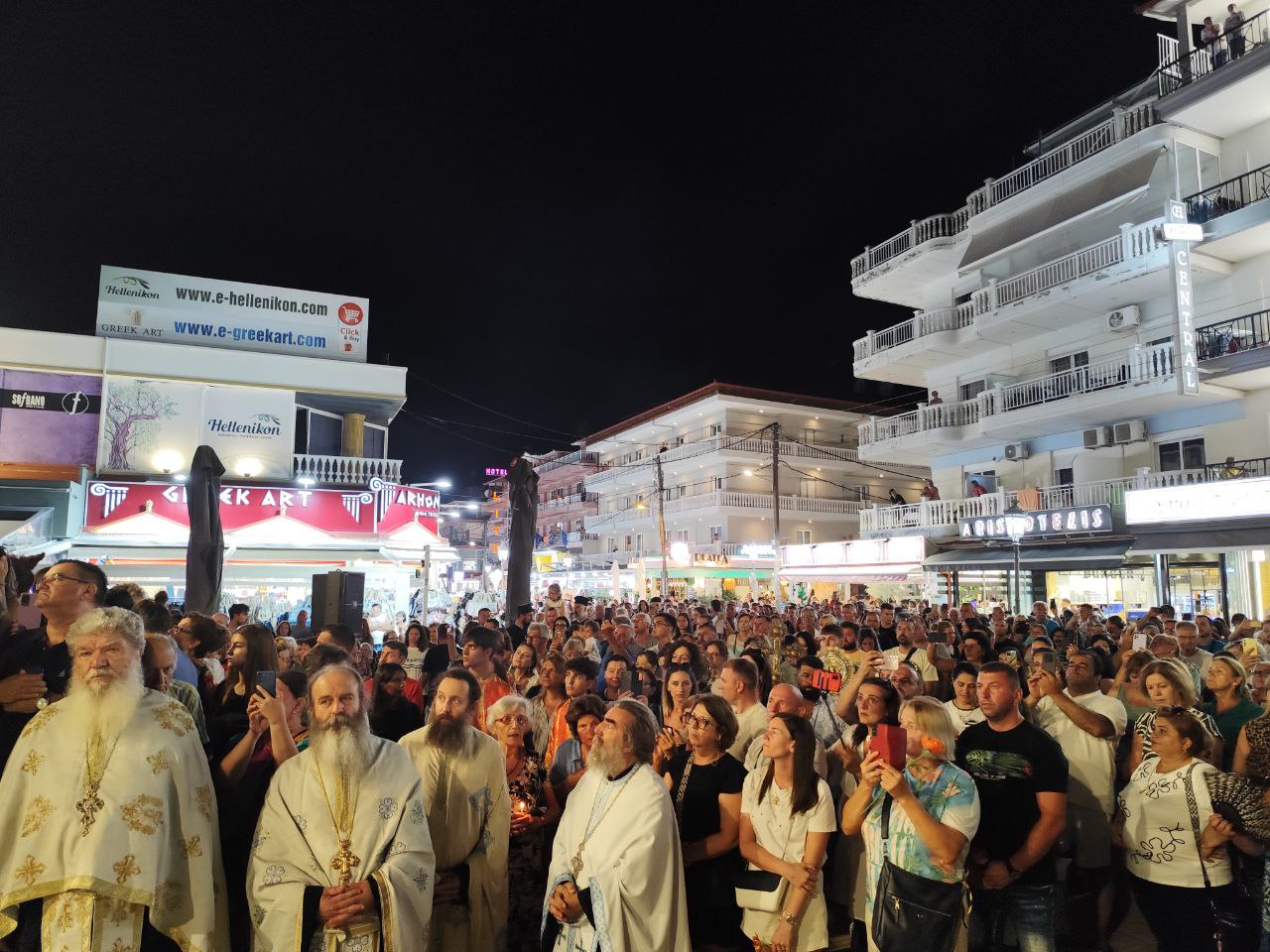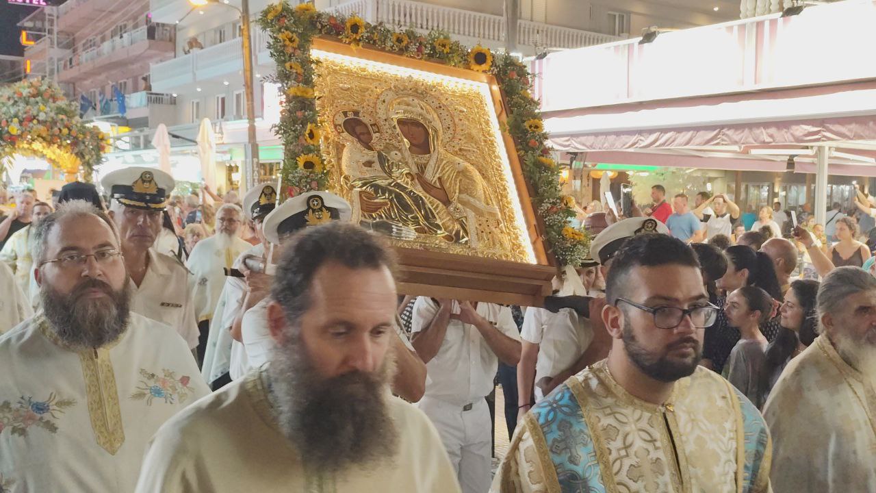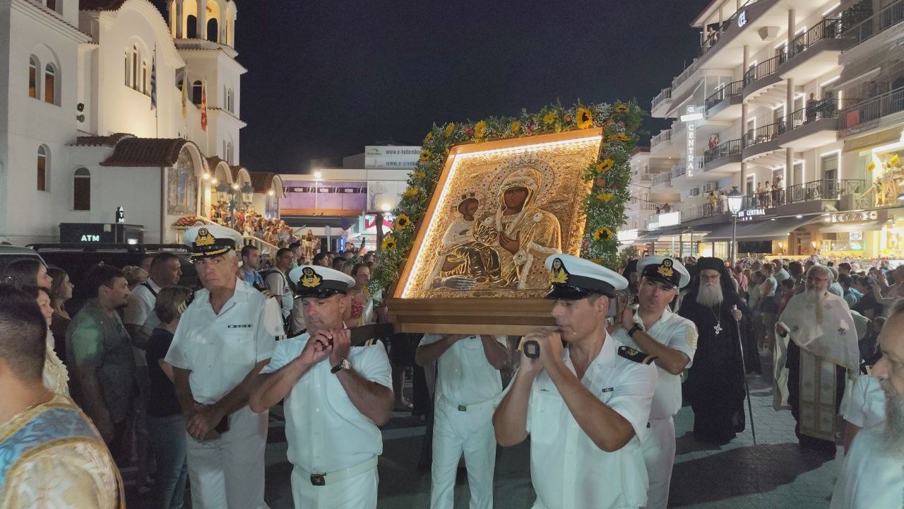 Με τη συμμετοχή πλήθους πιστών, Ελλήνων και ξένων, πραγματοποιήθηκε η λιτανεία του Επιταφίου της Παναγίας στην Παραλία Κατερίνης, με επίκεντρο τον Ιερό Ναό της Αγίας Φωτεινής.