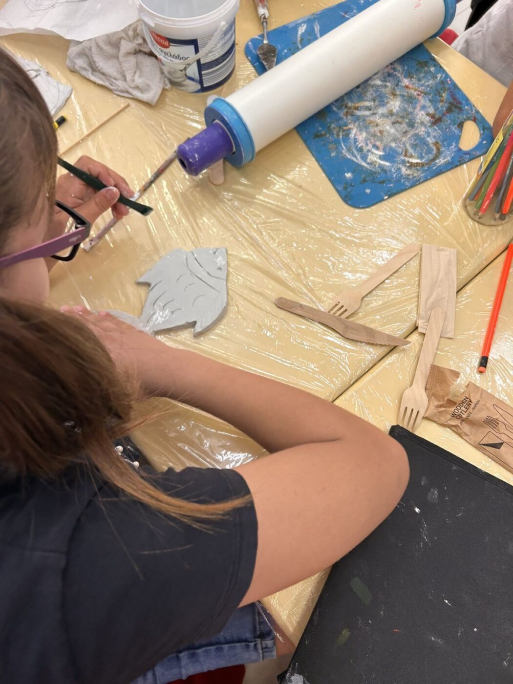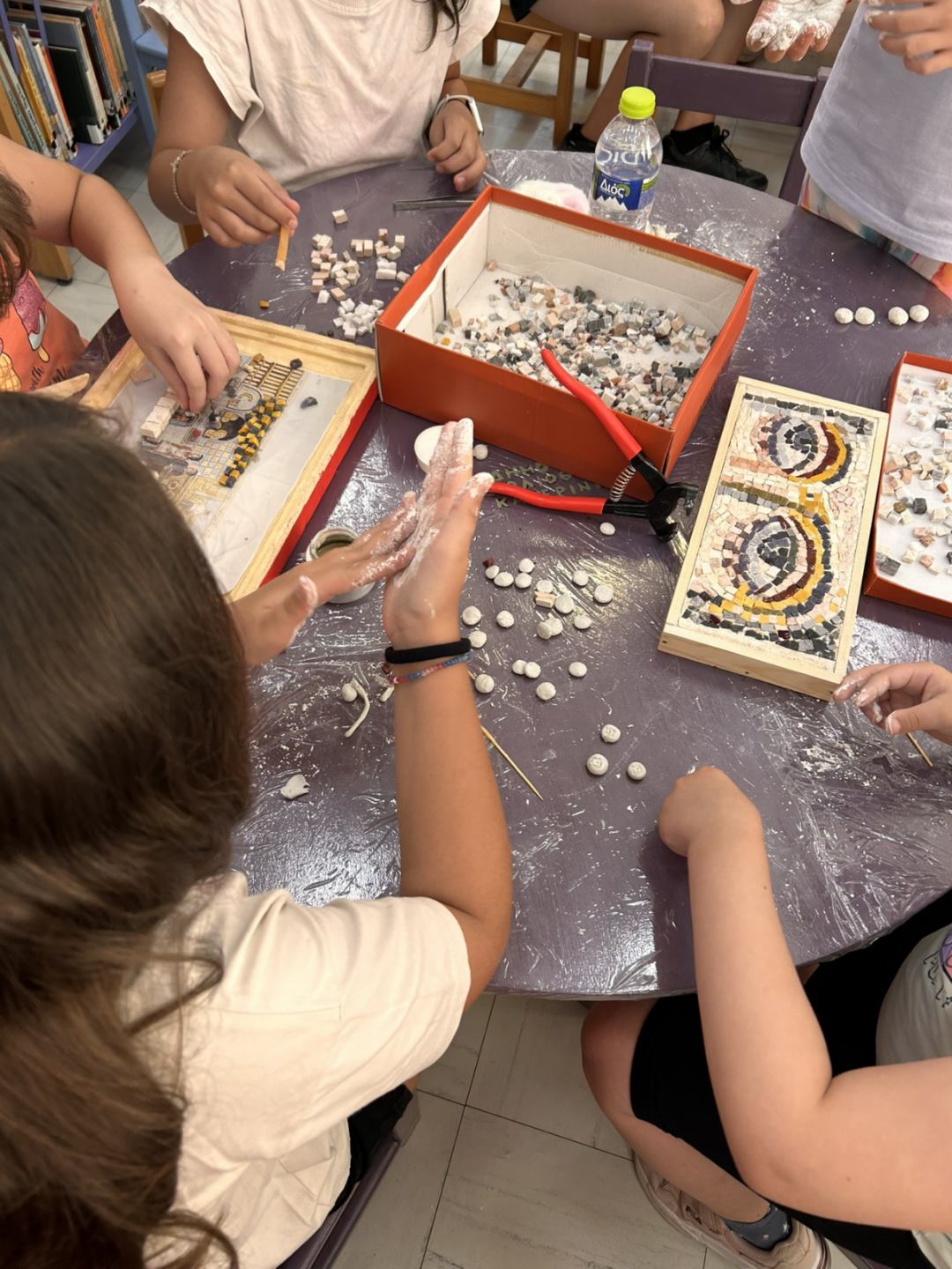 Η δράση κορυφώθηκε με το εργαστήρι ζωγραφικής, εμπνευσμένο από τον σπουδαίο λαϊκό ζωγράφο Θεόφιλο. Τα παιδιά παρατήρησαν με προσοχή τα έργα του και στη συνέχεια έφτιαξαν ψηφιδωτά εμπνευσμένα από την τοιχογραφία στον φούρνο Χατζηκωνσταντή, ενώ πειραματίστηκαν με τον πηλό, κατασκευάζοντας καραβάκια που θυμίζουν τους πίνακές του. Η χαρά της δημιουργίας και η επαφή με την τέχνη έδωσαν μια μοναδική εμπειρία σε όλους.