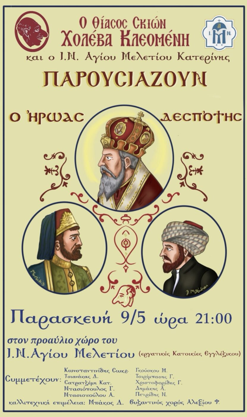 Ο Ιερός Ναός Αγίου Μελετίου Κατερίνης σε συνεργασία με τον Θίασο Σκιών του Χολέβα Κλεομένη παρουσιάζουν: «Ο Ήρωας Δεσπότης»