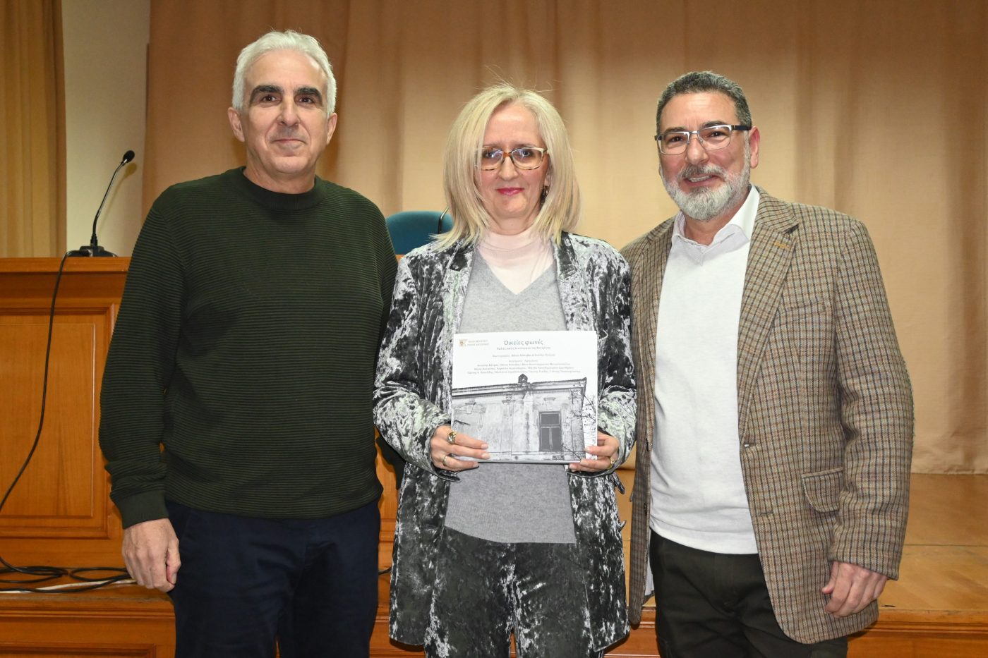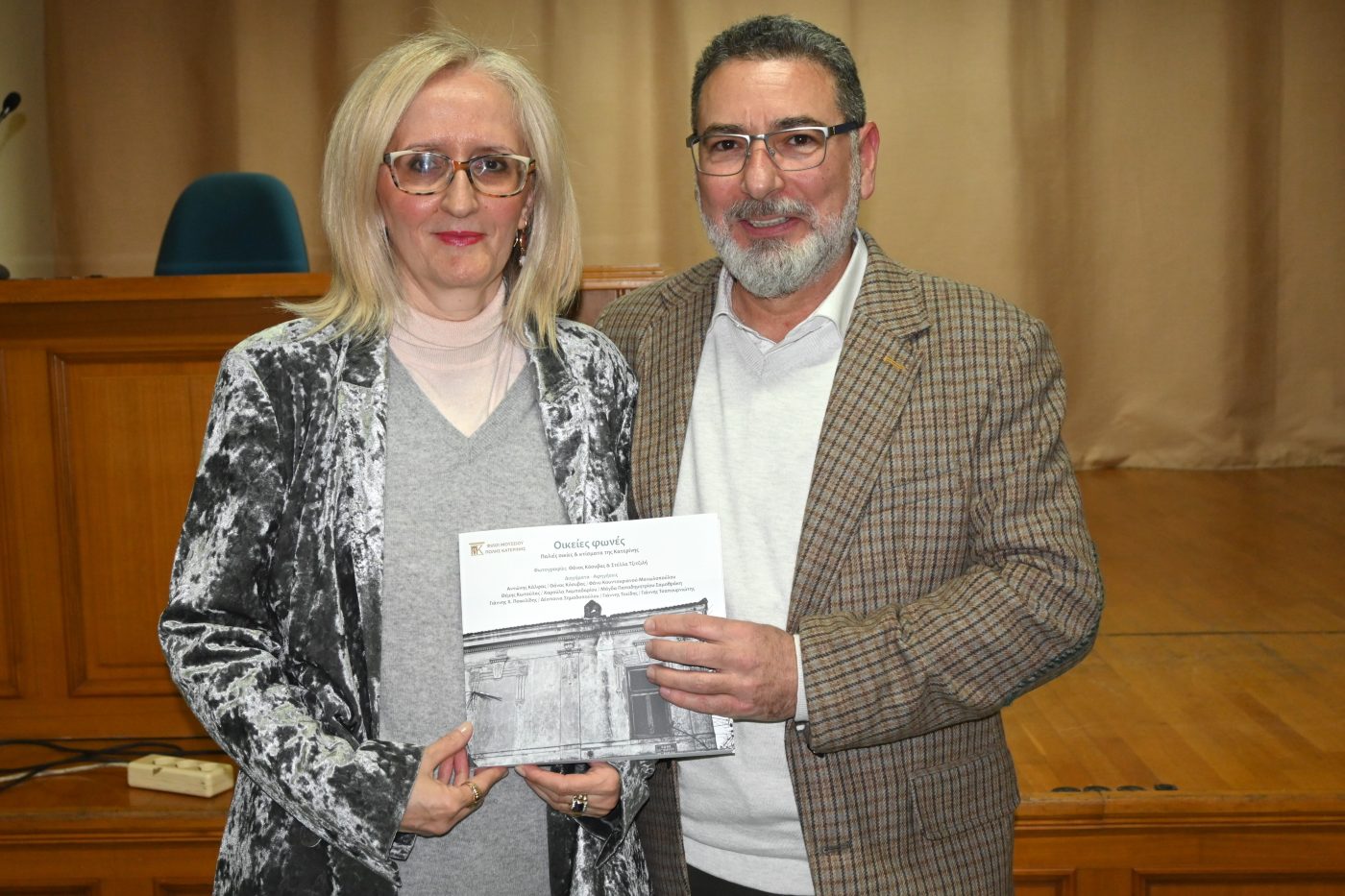 Το Σάββατο 17 Ιανουαρίου 2026, στην κατάμεστη αίθουσα του 1ου ορόφου του Πνευματικού Κέντρου Κατερίνης «Εκάβη», έγινε με επιτυχία η παρουσίαση του λευκώματος «Οικείες φωνές. Παλιές οικίες & κτίσματα της Κατερίνης», μία έκδοση της ΑΜΚΕ «Φίλοι Μουσείου Πόλης Κατερίνης», σε επιμέλεια Θάνου Κόσυβα, με φωτογραφίες του Θάνου Κόσυβα και της Στέλλας Τζιτζιλή και με διηγήματα και αφηγήσεις των παρακάτω 10 συγγραφέων και ανθρώπων της πόλης μας: