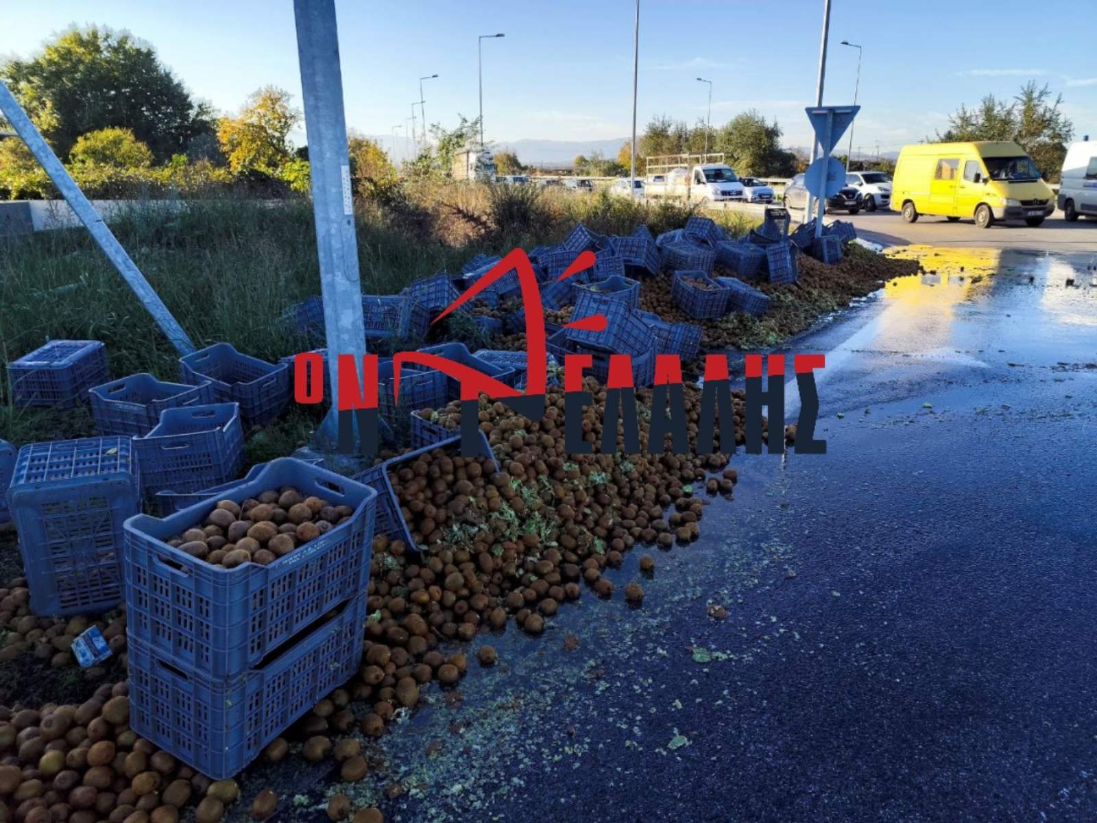 Απρόσμενο συμβάν σημειώθηκε το μεσημέρι στον περιφερειακό της Κατερίνης, στο ύψος του κόμβου Βροντινού, όταν φορτίο νταλίκας με ακτινίδια μετατοπίστηκε και κατέληξε στο οδόστρωμα, προκαλώντας αναστάτωση στην κυκλοφορία προς Αθήνα.
