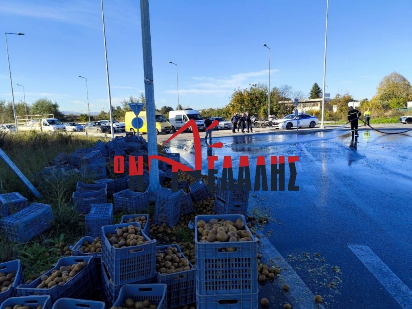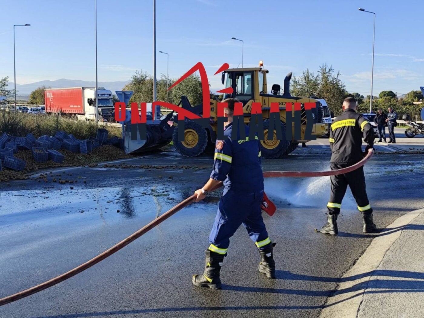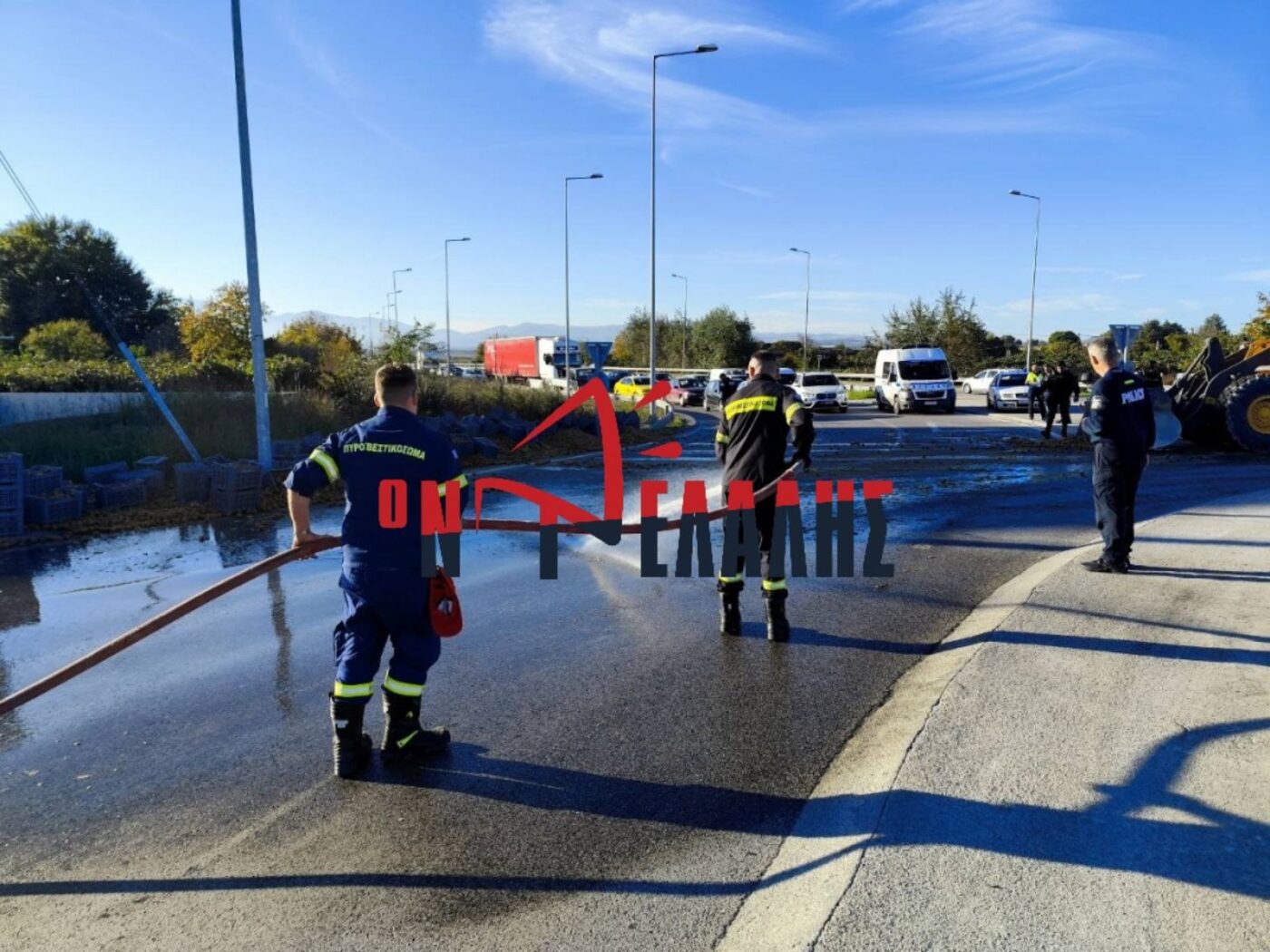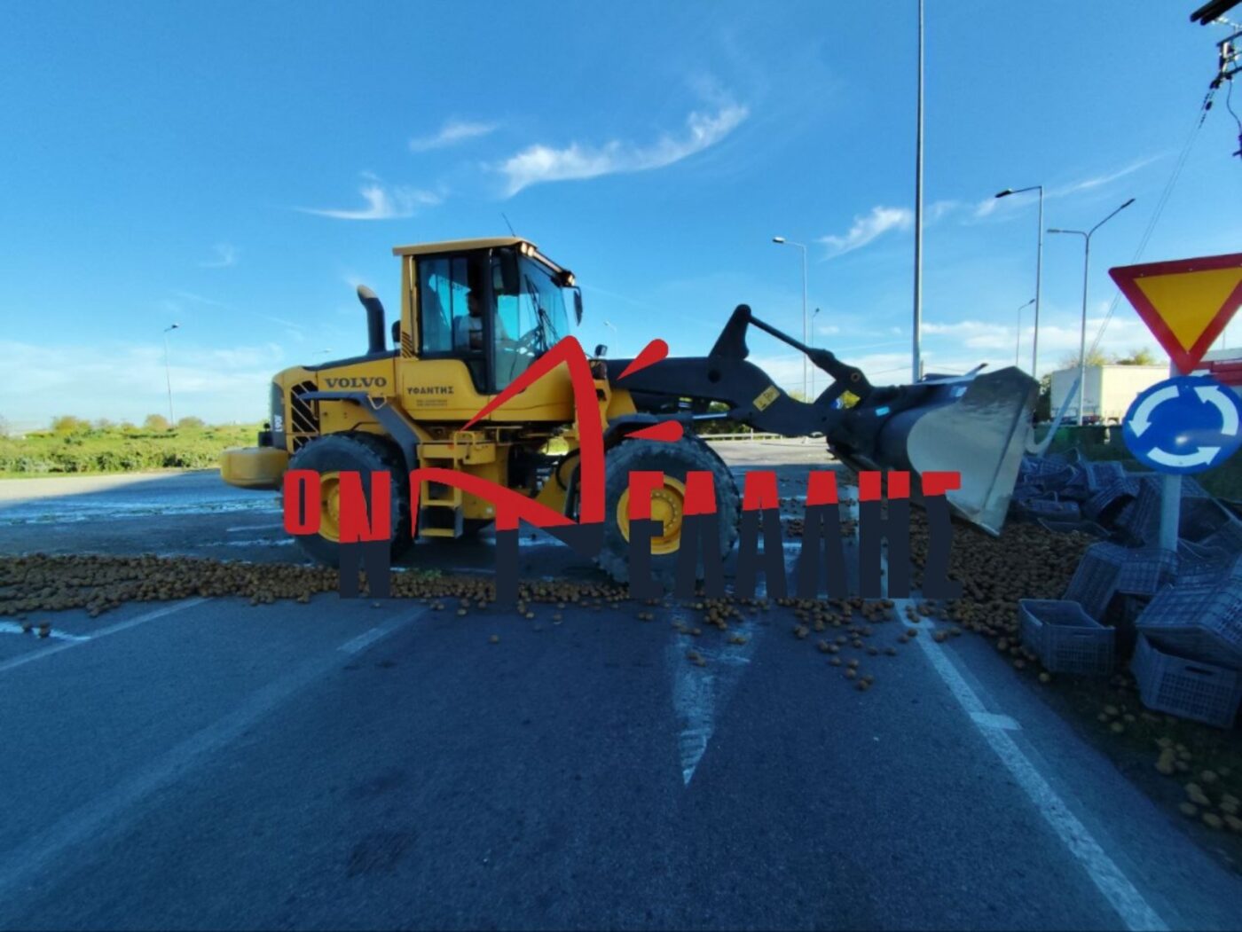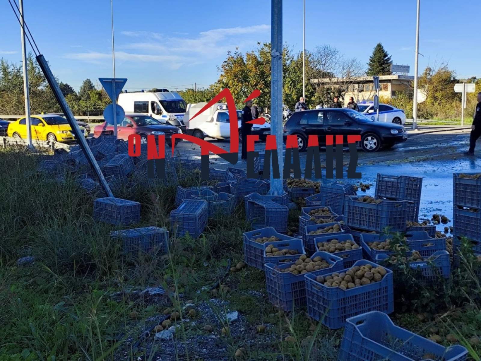 Η Πυροσβεστική Υπηρεσία έσπευσε άμεσα στο σημείο και προχώρησε στον καθαρισμό του δρόμου, ενώ φορτωτής ανέλαβε την απομάκρυνση των φρούτων. Παράλληλα, η Τροχαία Κατερίνης και η ομάδα ΔΙΑΣ βρέθηκαν εκεί για να ρυθμίσουν την κυκλοφορία και να διασφαλίσουν την ομαλή διέλευση των οχημάτων.