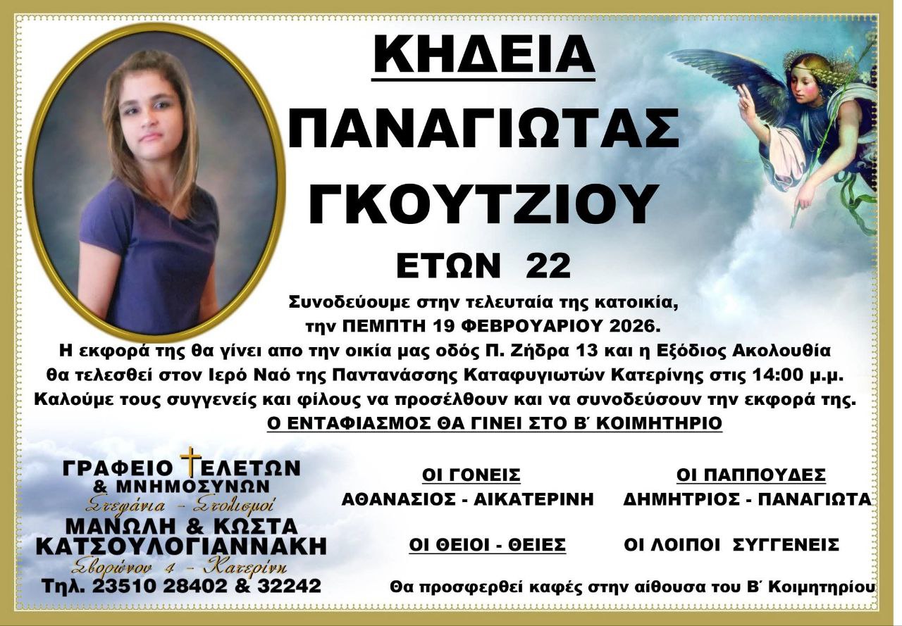 “Έφυγε” από τη ζωή η Παναγιώτα Γκούτζιου σε ηλικία 22 ετών, σκορπώντας τη θλίψη σε συγγενείς και φίλους.