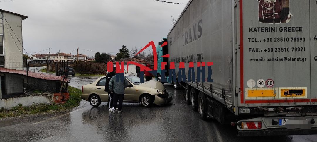 Το αυτοκίνητο κατέληξε κάτω από διερχόμενη νταλίκα που κινούνταν με κατεύθυνση προς Κατερίνη. Παρά την δυνατή σύγκρουση, ευτυχώς δεν αναφέρθηκε τραυματισμός, κανενός εκ των οδηγών.