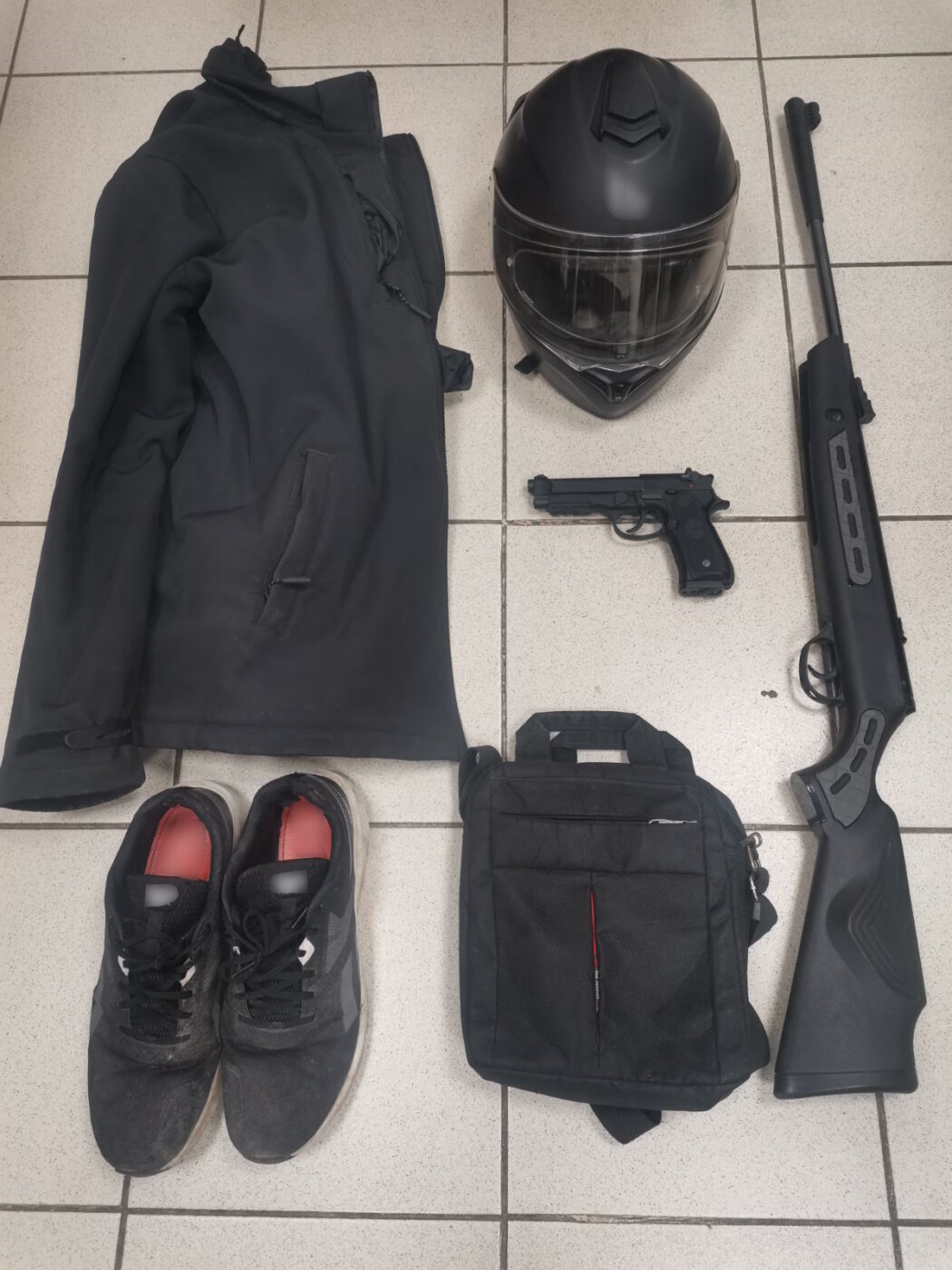 - ένα αεροβόλο πιστόλι, που χρησιμοποίησε στην απόπειρα ληστείας και