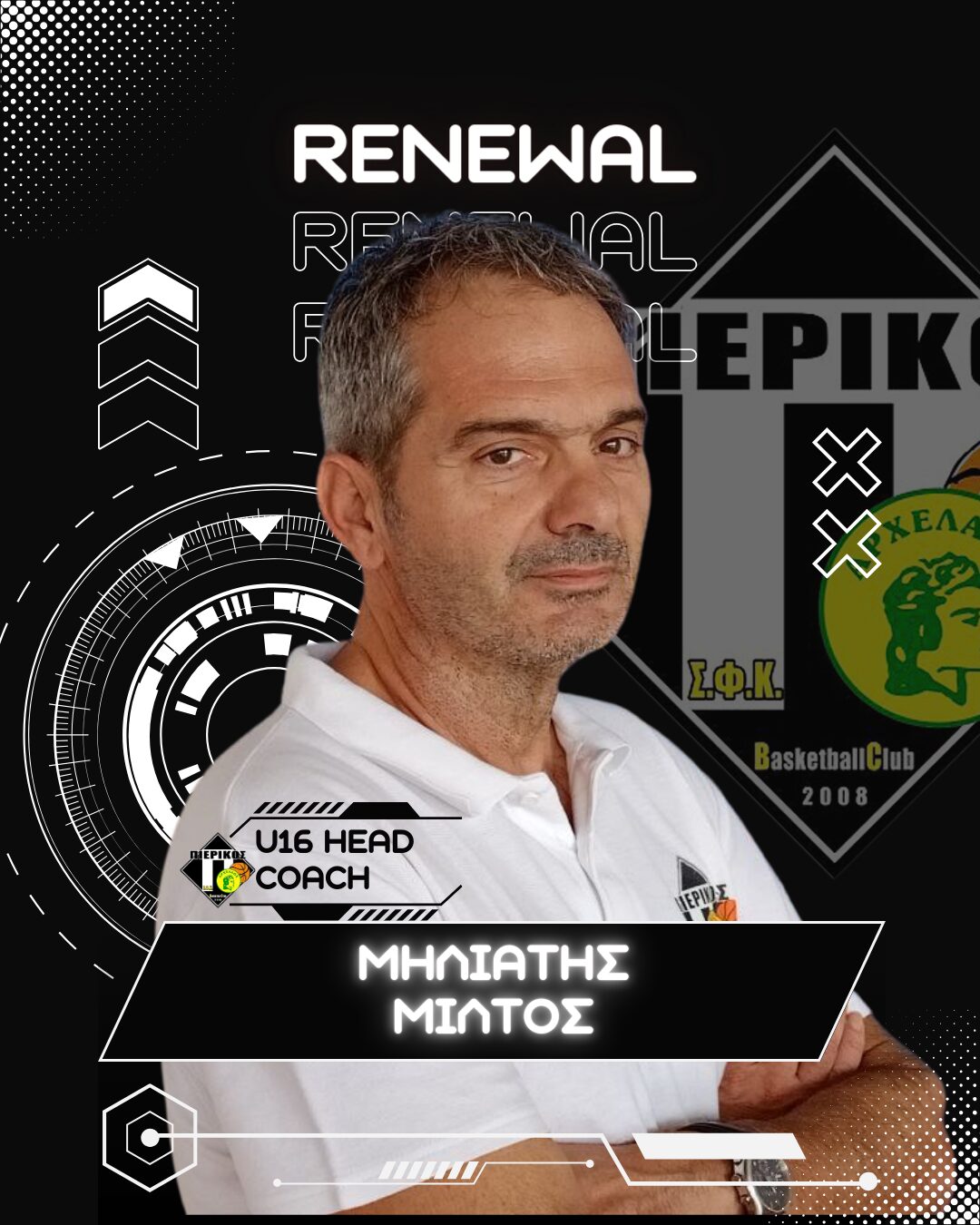 Ο Πιερικός Αρχέλαος ανακοινώνει την ανανέωση της συνεργασίας του με τον Μίλτο Μηλιάτη.