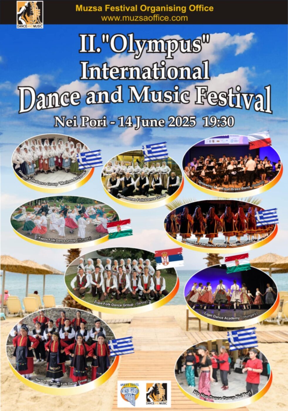 Ο Πολιτιστικός Σύλλογος Νέων Πόρων σας προσκαλεί στο Διεθνές Φεστιβάλ Χορού & Μουσικής, το Σάββατο 14 Ιουνίου 2025 και ώρα 19:30 στην κεντρική πλατεία Νέων Πόρων.