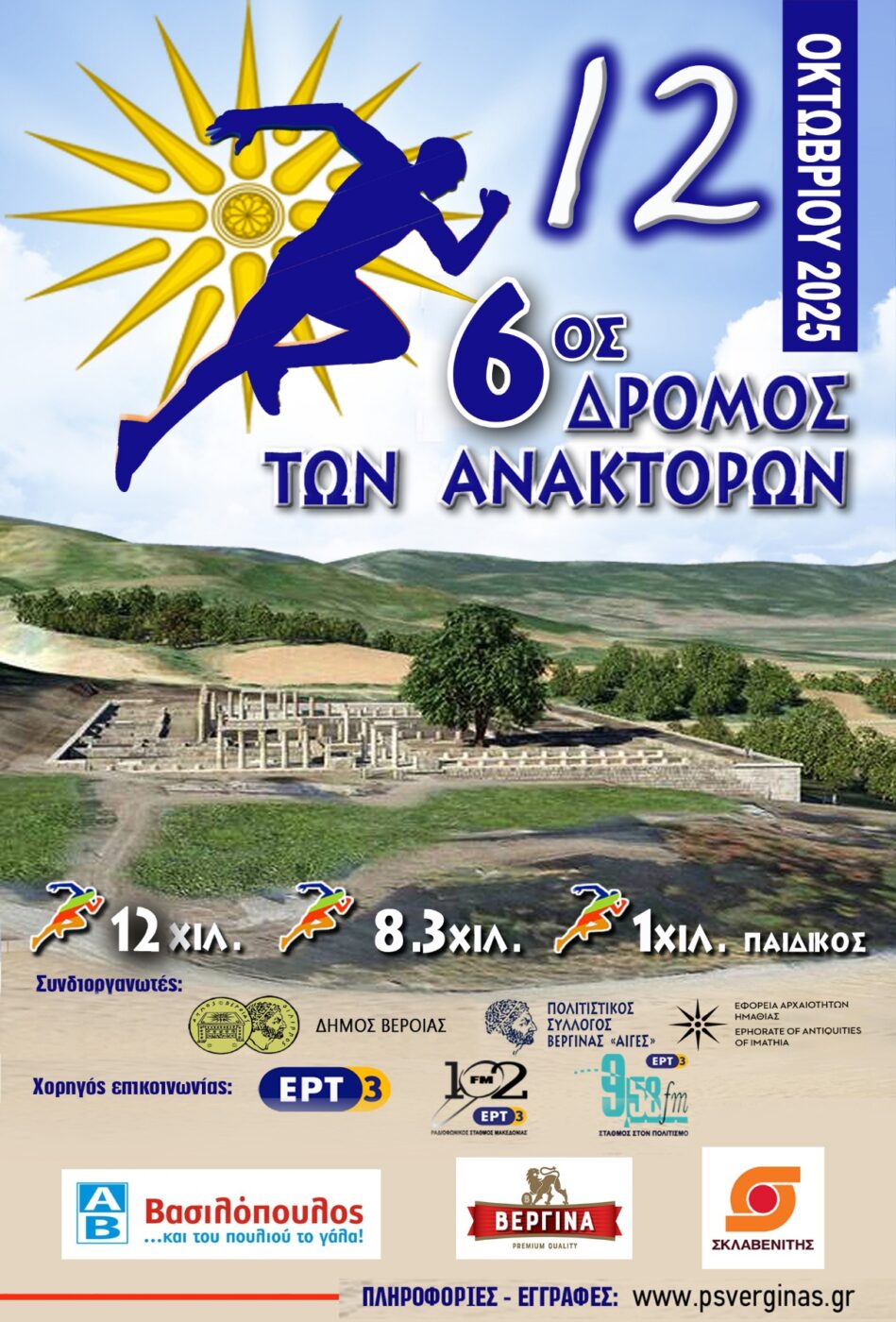 Ο Πολιτιστικός Σύλλογος Βεργίνας “ΑΙΓΕΣ” στις 12 Οκτωβρίου 2025 θα πραγματοποιήσει τον 6ο ορεινό Δρόμο των Ανακτόρων στη Βεργίνα Ημαθίας Οι διαδρομές που θα ακολουθήσουν οι δρομείς είναι τέσσερις.