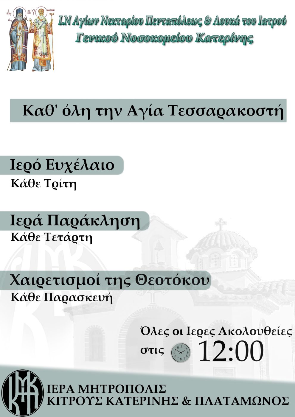 Πρόγραμμα ακολουθιών Αγίας Τεσσαρακοστής Ι.Ν. Νοσοκομείο Κατερίνης