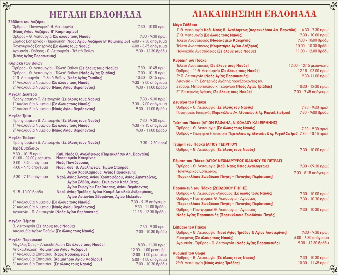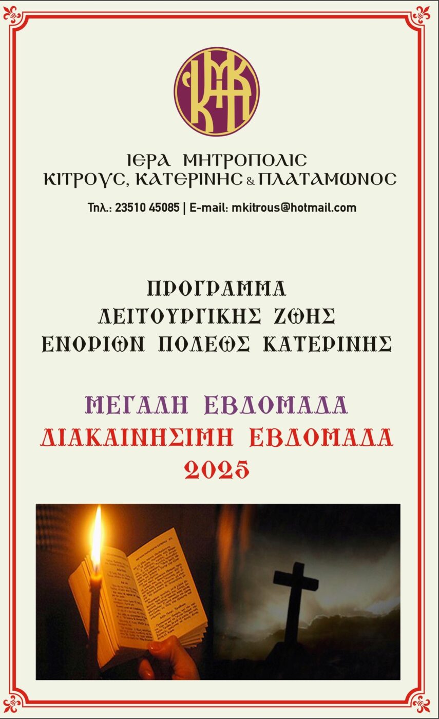 Πρόγραμμα Λειτουργικής Ζωής Ενοριών πόλεως Κατερίνης για την Μεγάλη & τη Διακαινήσιμη εβδομάδα