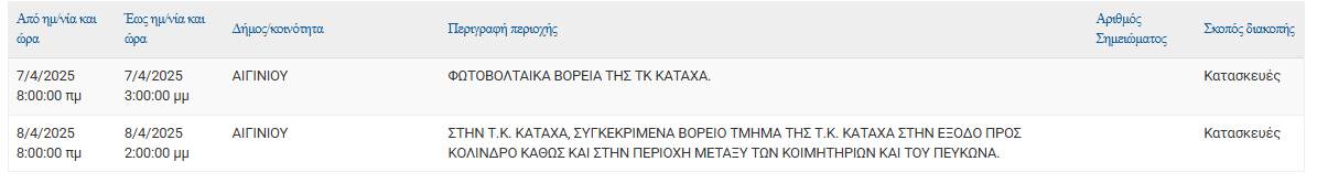 Σύμφωνα με ανακοίνωση της ΔΕΔΔΗΕ Α.Ε., Προγραμματισμένη διακοπή ρεύματος 07/04, 08/04 στις εξής τοποθεσίες: