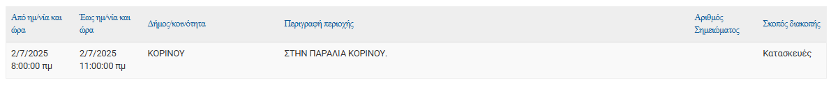 Σύμφωνα με ανακοίνωση της ΔΕΔΔΗΕ Α.Ε., Προγραμματισμένη διακοπή ρεύματος 02/07 στις εξής τοποθεσίες: