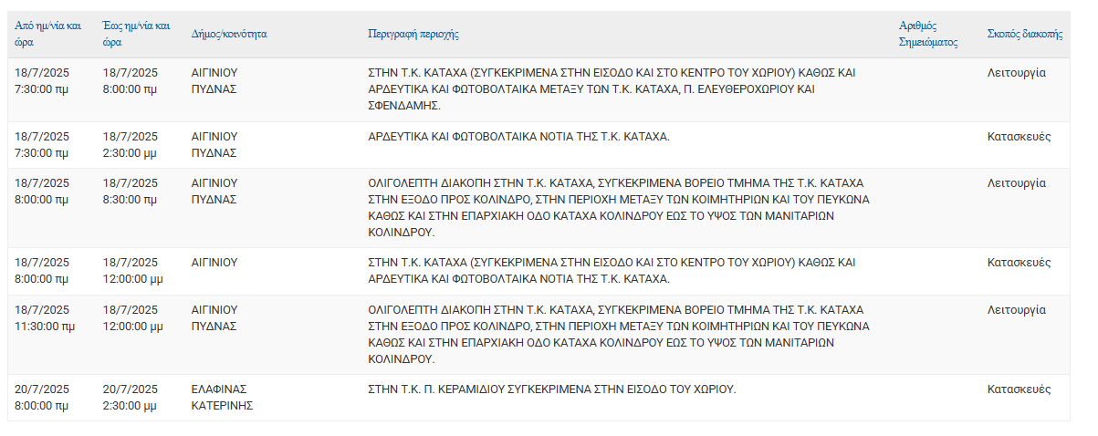 Σύμφωνα με ανακοίνωση της ΔΕΔΔΗΕ Α.Ε., Προγραμματισμένη διακοπή ρεύματος 18/07 και 20/07 στις εξής τοποθεσίες: