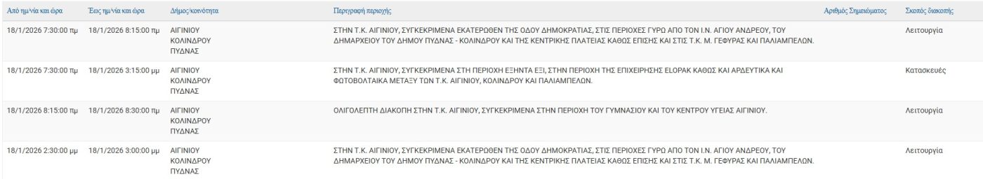 Σύμφωνα με ανακοίνωση της ΔΕΔΔΗΕ Α.Ε., Προγραμματισμένη διακοπή ρεύματος 18/01 στις εξής τοποθεσίες: