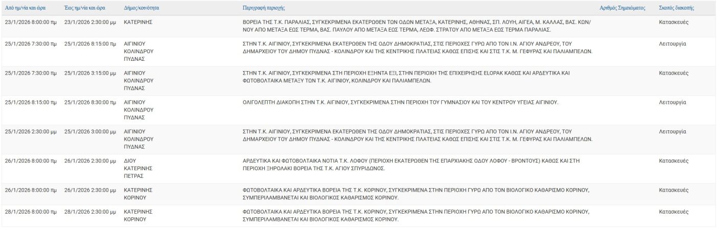 Σύμφωνα με ανακοίνωση της ΔΕΔΔΗΕ Α.Ε., Προγραμματισμένη διακοπή ρεύματος 23/01, 25/01 και 26/01 στις εξής τοποθεσίες:
