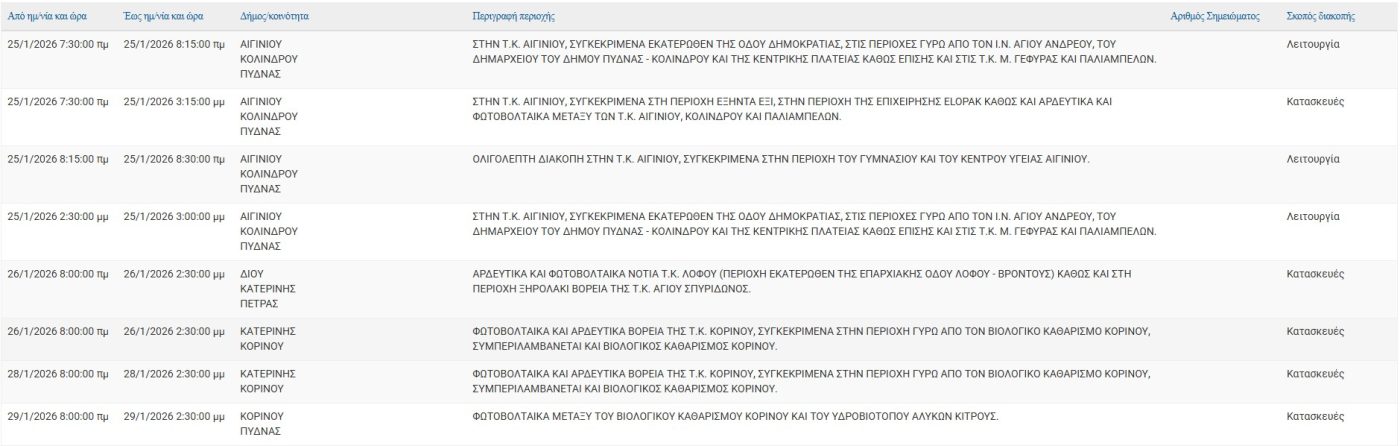 Σύμφωνα με ανακοίνωση της ΔΕΔΔΗΕ Α.Ε., Προγραμματισμένη διακοπή ρεύματος 25/01, 26/01, 28/01, 29/01 και 30/01 στις εξής τοποθεσίες: