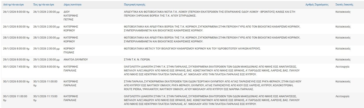 Σύμφωνα με ανακοίνωση της ΔΕΔΔΗΕ Α.Ε., Προγραμματισμένη διακοπή ρεύματος 26/01, 28/01, 29/01 και 30/01 στις εξής τοποθεσίες: