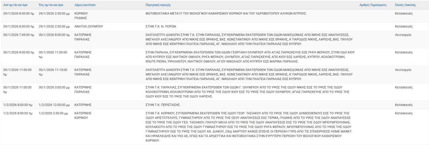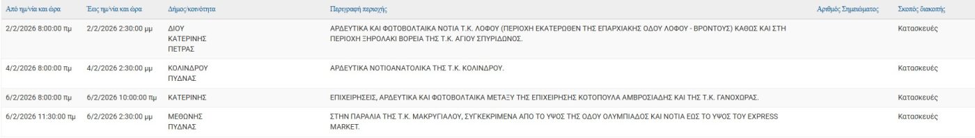 Σύμφωνα με ανακοίνωση της ΔΕΔΔΗΕ Α.Ε., Προγραμματισμένη διακοπή ρεύματος 29/01, 30/01, 01/02, 02/02, 04/02 και 06/02 στις εξής τοποθεσίες: