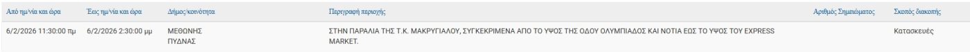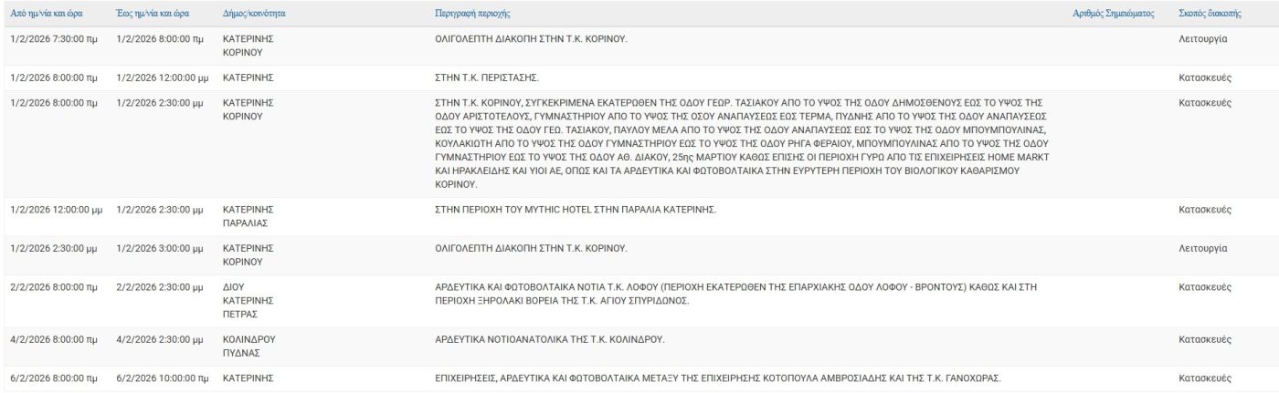 Σύμφωνα με ανακοίνωση της ΔΕΔΔΗΕ Α.Ε., Προγραμματισμένη διακοπή ρεύματος 01/02, 02/02, 04/02 και 06/02 στις εξής τοποθεσίες: